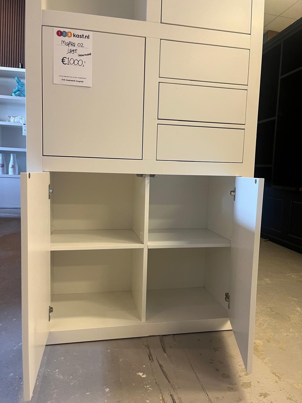 Bringen Sie Stil und Funktionalität in Ihr Zuhause mit diesem schönen Aktenschrank Mafra 02. Dieses Ausstellungsmodell hat großzügige Abmessungen von 100 × 40 × 240 (h) cm und ist in der zeitlosen Farbe RAL 9010 (weiß) gehalten. Der Schrank verfügt sowohl über offene Fächer als auch über geschlossene Fronten, so dass Sie Ihre Lieblingsbücher, -accessoires oder -geschirr stilvoll mit praktischem Stauraum kombinieren können.