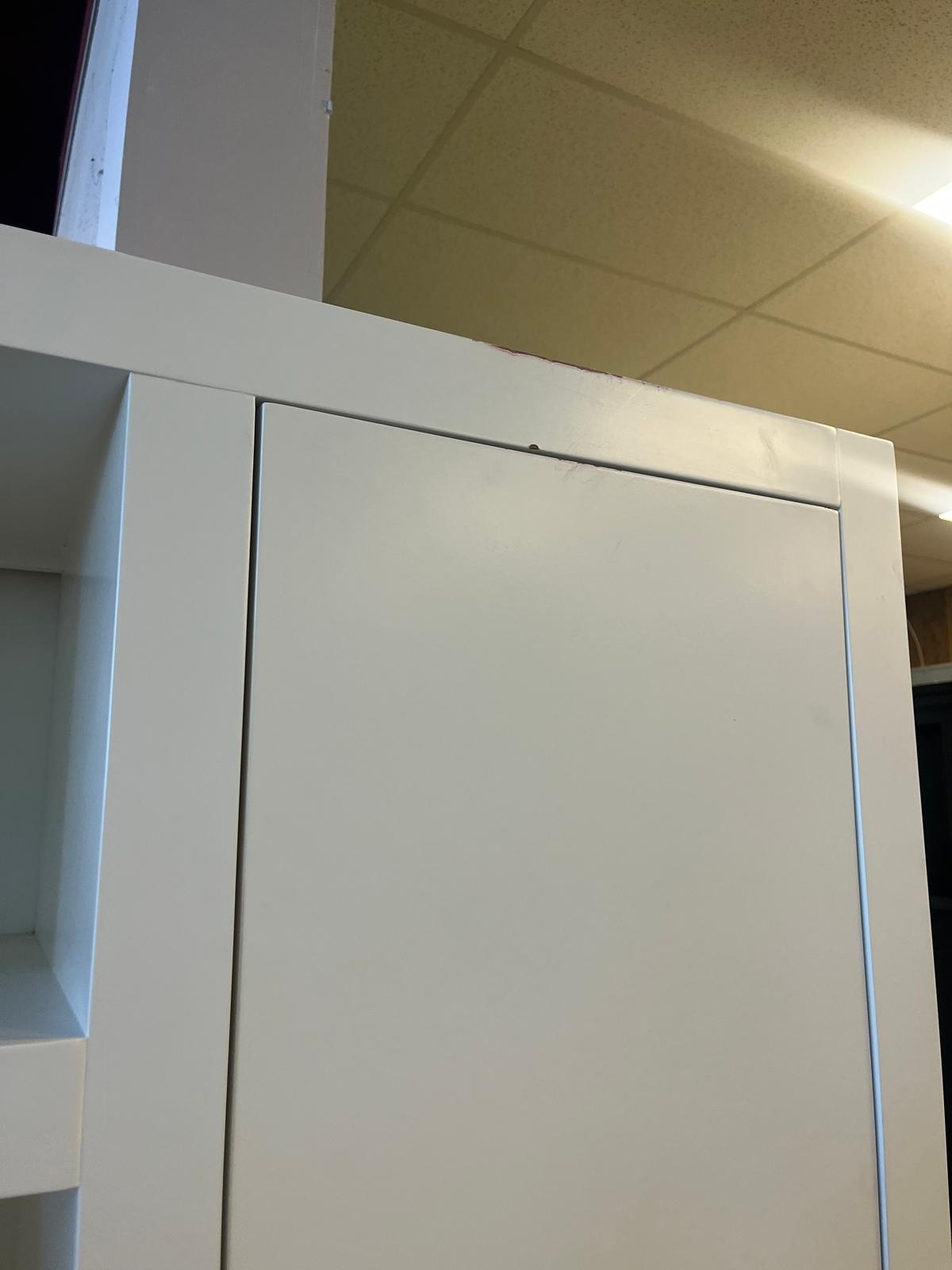 Der Schrank hat einige leichte Beschädigungen, die aber mit ein wenig Schleifen und einer Sprühdose leicht selbst zu beheben sind. Dadurch wird er wieder wie neu aus der Fabrik glänzen. Ansonsten ist der Schrank in einem ausgezeichneten Zustand und wird jahrelang in Ihrer Einrichtung halten.