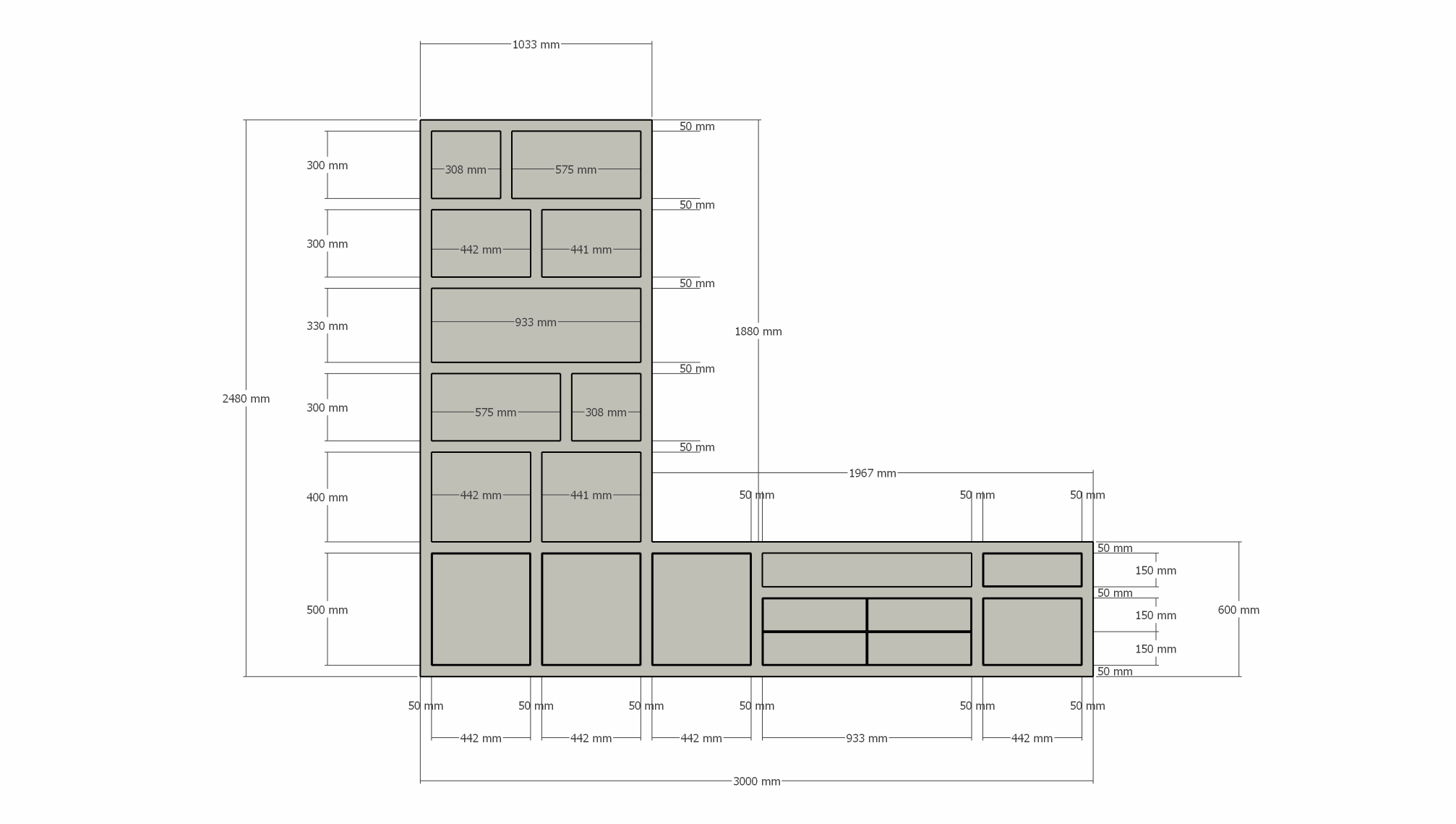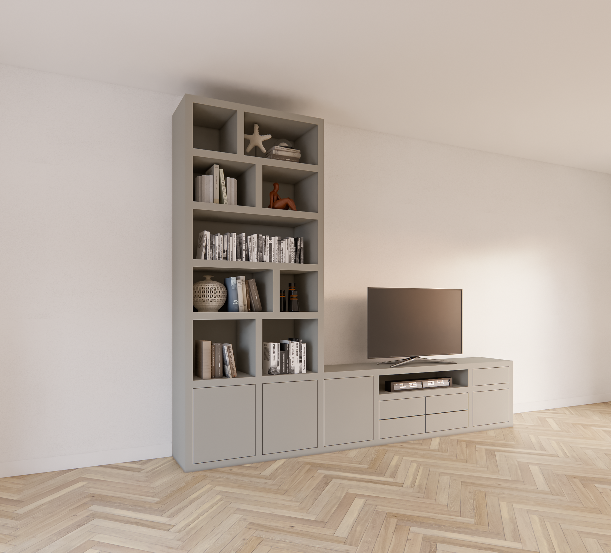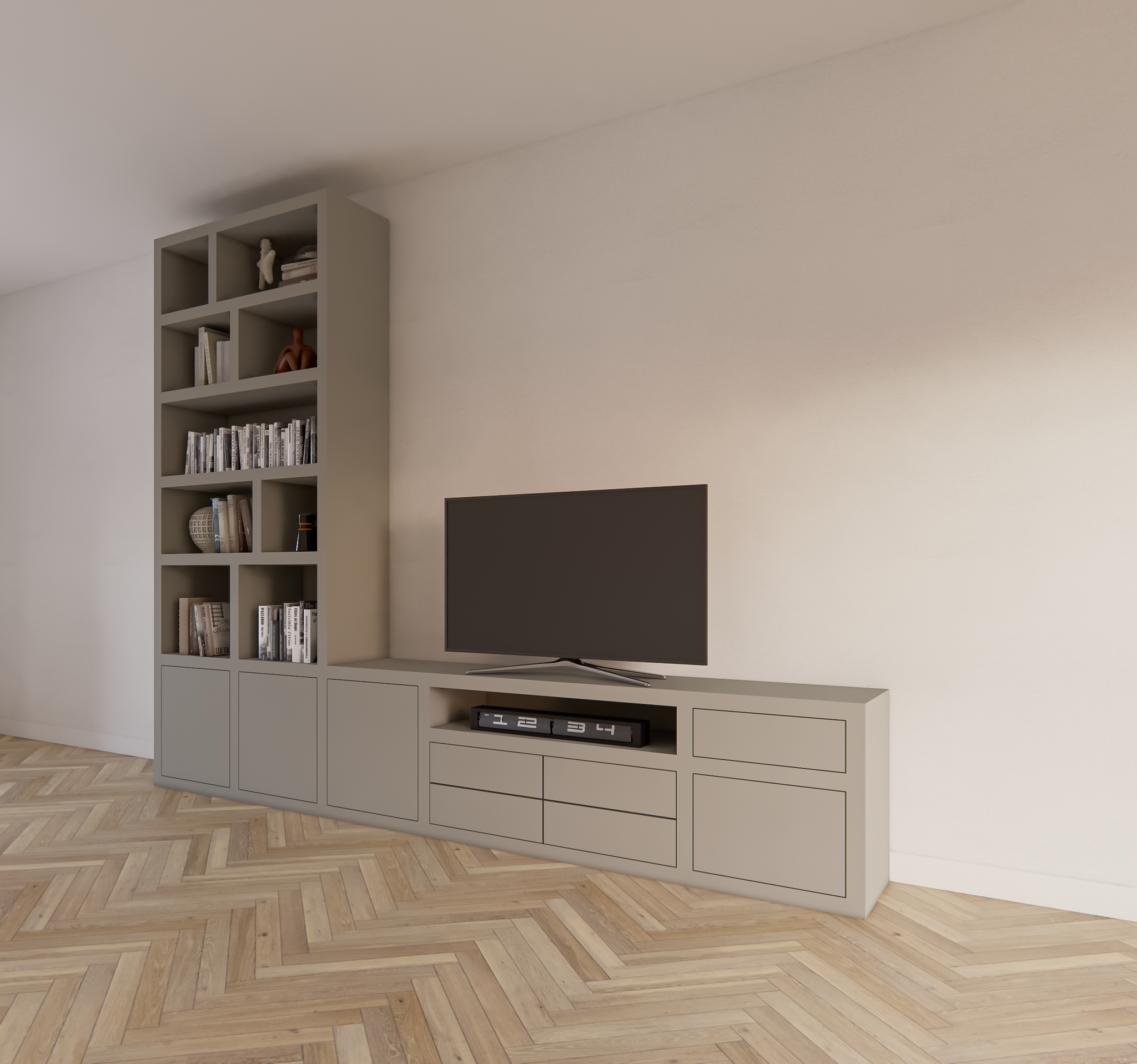 Kommode Rennes - 300x40x240H cm - Schubladen mit Push-to-Open - Türen mit Push-to-Open - offene Einlegeböden - schlichte Ausführung