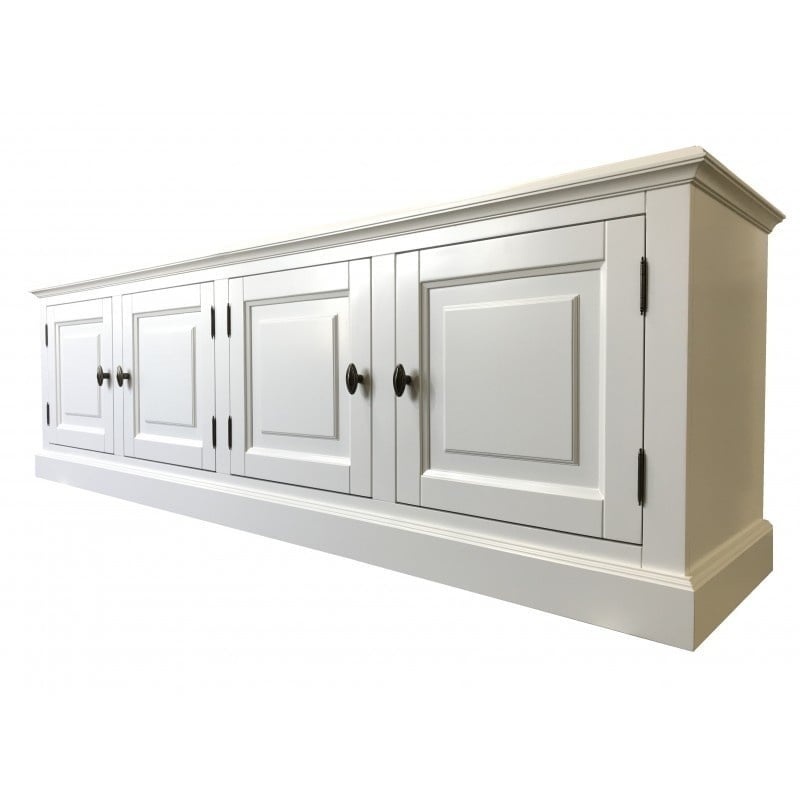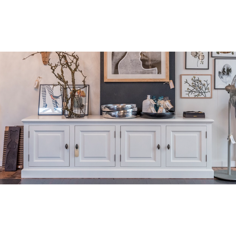 Verstecken Sie all Ihre Mediengeräte außer Sichtweite mit dem TV-Schrank Moonstar. Dieses TV-Sideboard ist höher als ein normales TV-Sideboard und hat 4 Flügeltüren. Sie können fast jeden Fernseher auf die schöne Platte stellen. Mit seinem ländlichen und charaktervollen Aussehen ist der TV-Schrank Moonstar ein Stimmungsmacher in Ihrem Zuhause. Das TV-Sideboard ist aus Ahornholz gefertigt und kann in jeder RAL-Farbe Ihrer Wahl lackiert werden!
