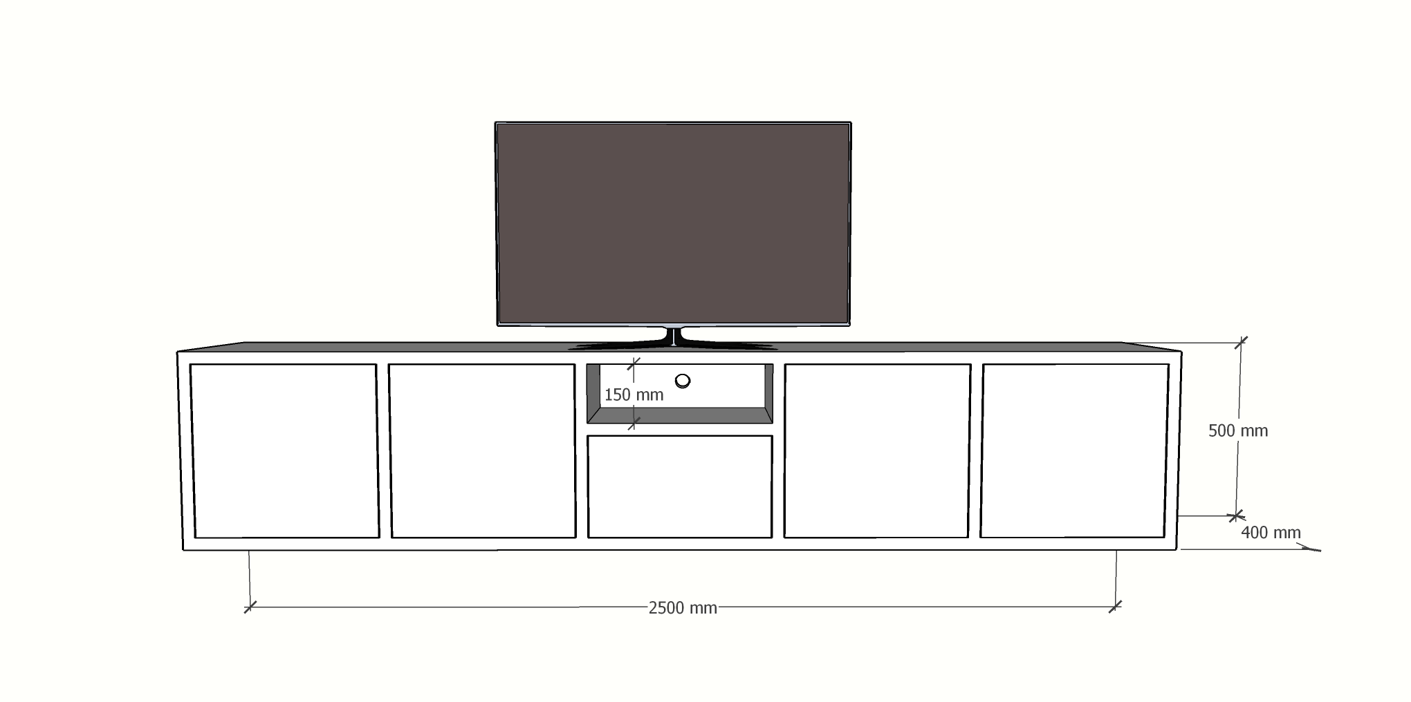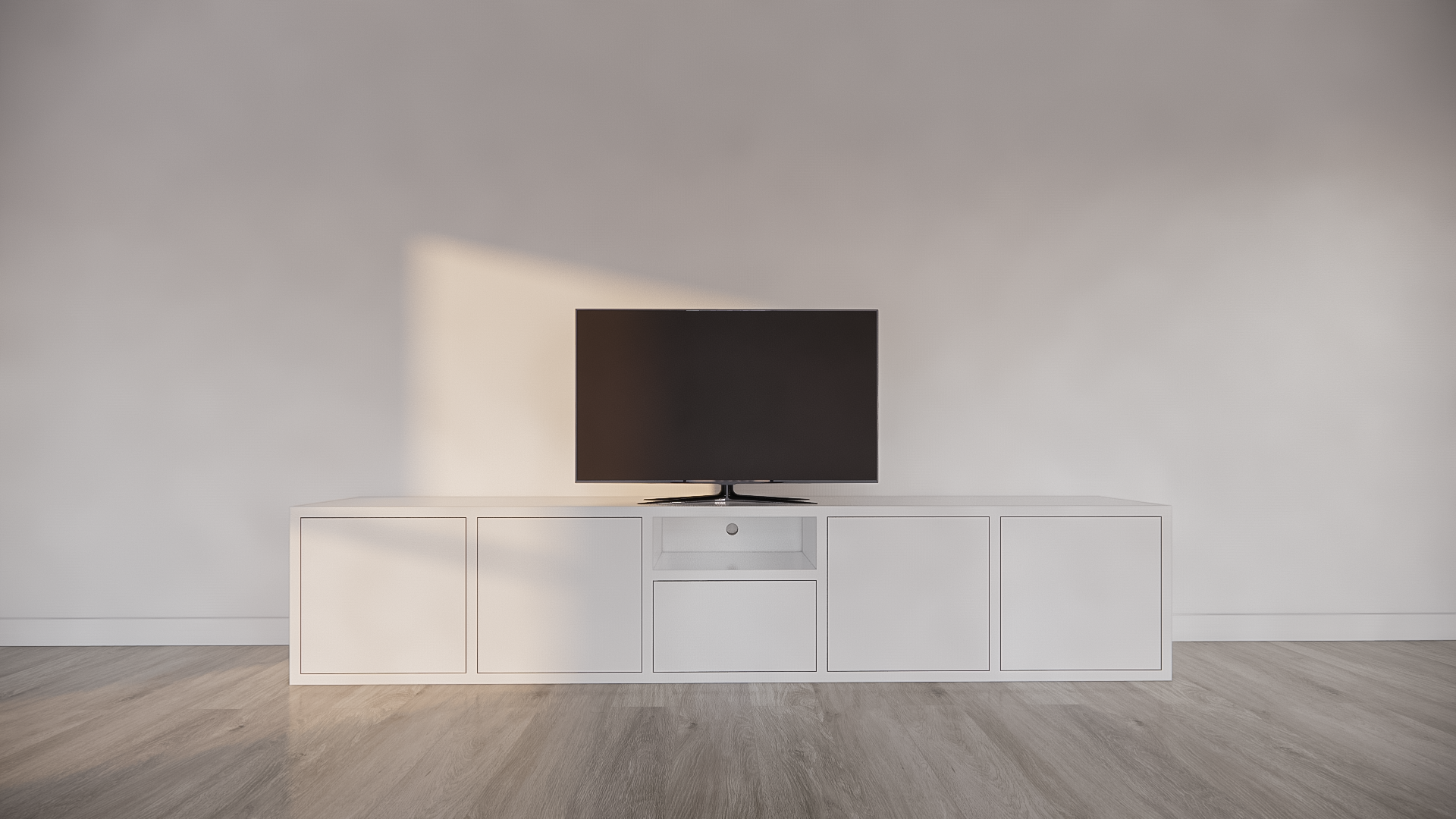 123schrank Benniras TV-Sideboard - 250x40x50H cm - 5 push-to-open Türen - offenes Mittelfach - schlankes Design