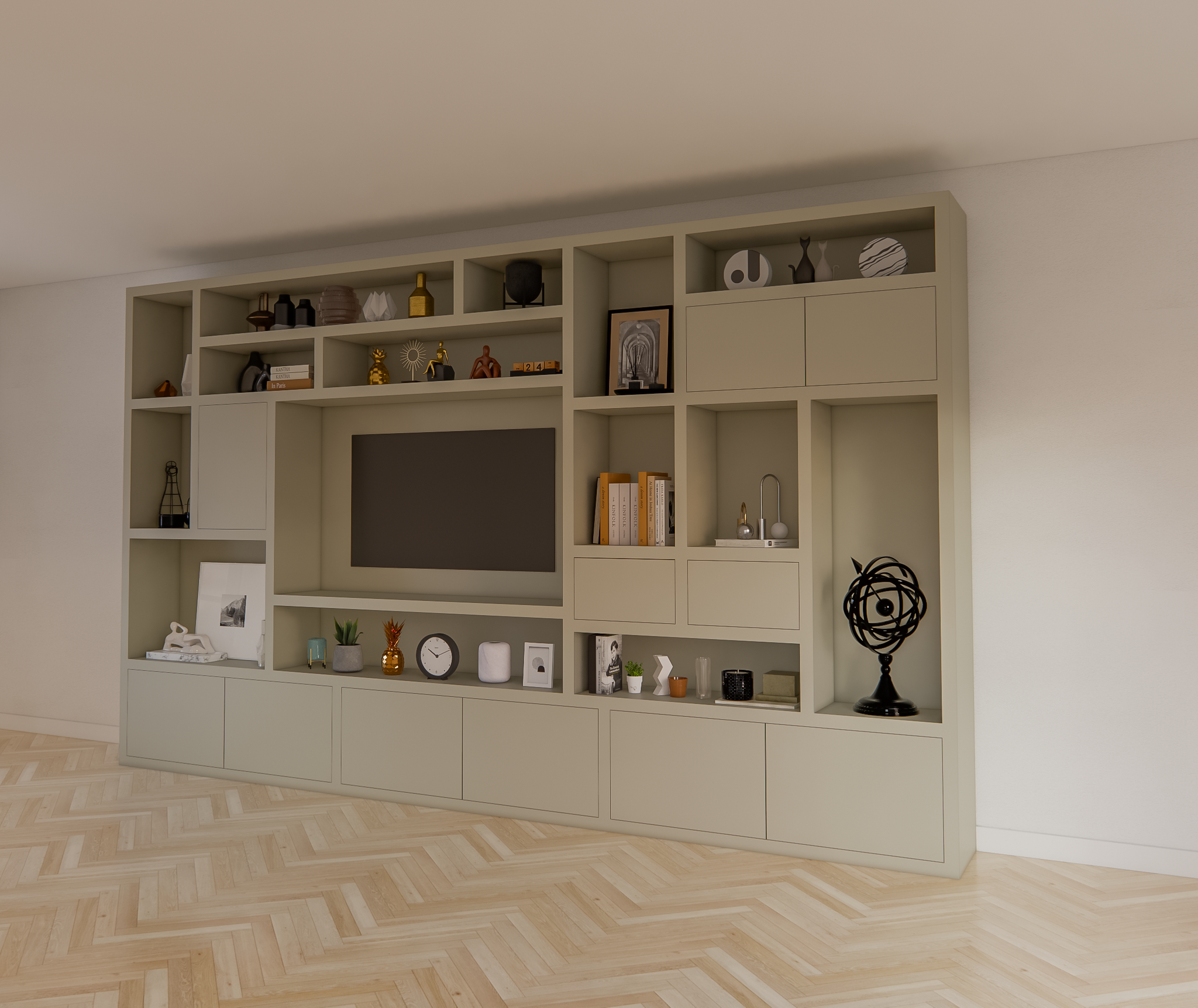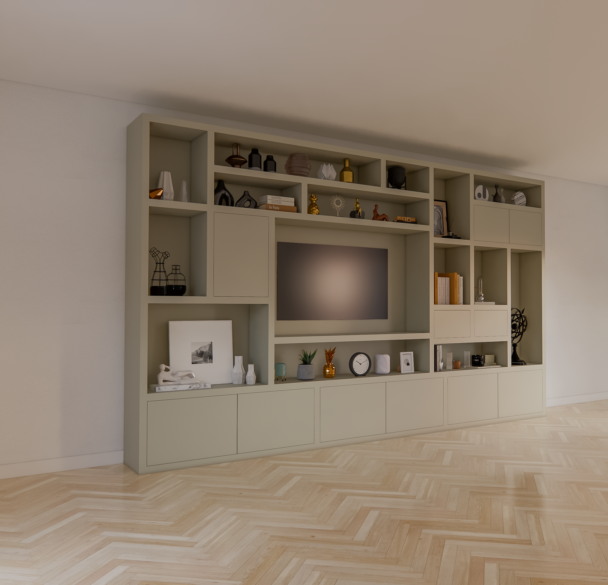 Der TV-Regalschrank Vasto ist ein beeindruckendes Möbelstück, das Funktionalität und Design nahtlos miteinander verbindet. Mit seinen großzügigen Maßen von 400x40x240H cm bietet dieser Schrank nicht nur reichlich Stauraum, sondern auch eine stilvolle Cinewall für Ihr Fernseh- und Unterhaltungsequipment.
