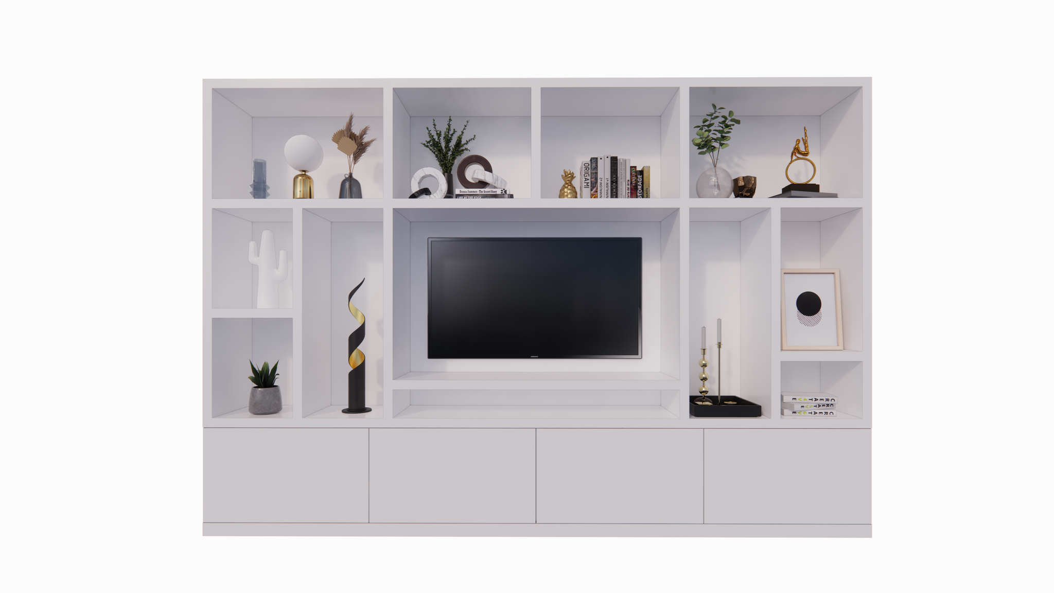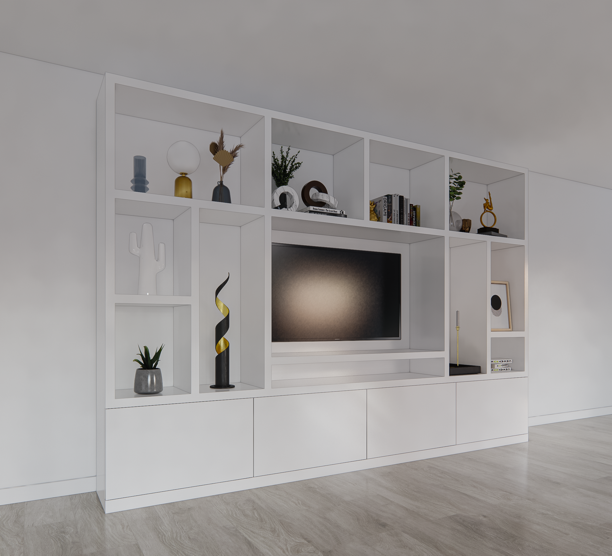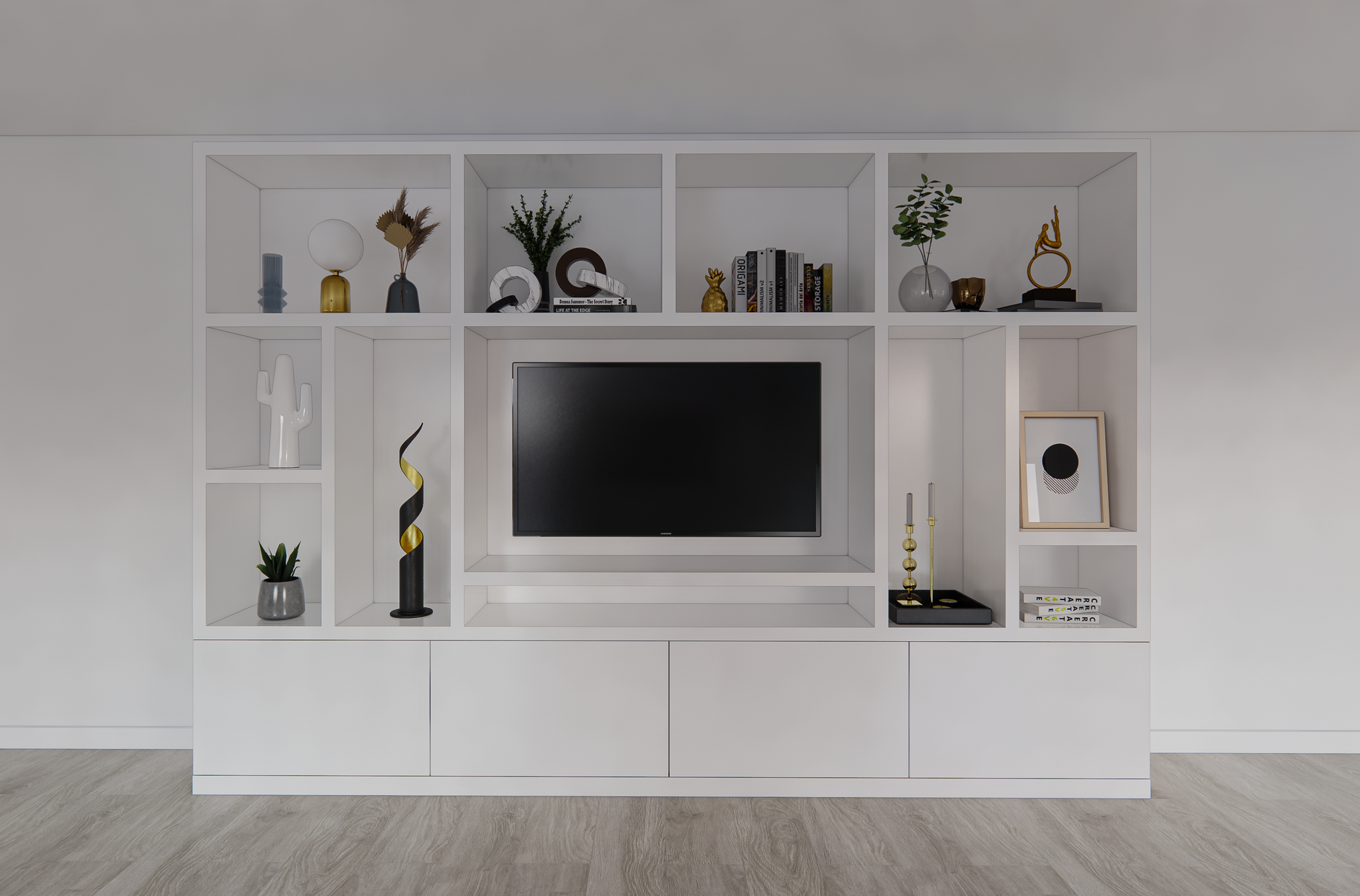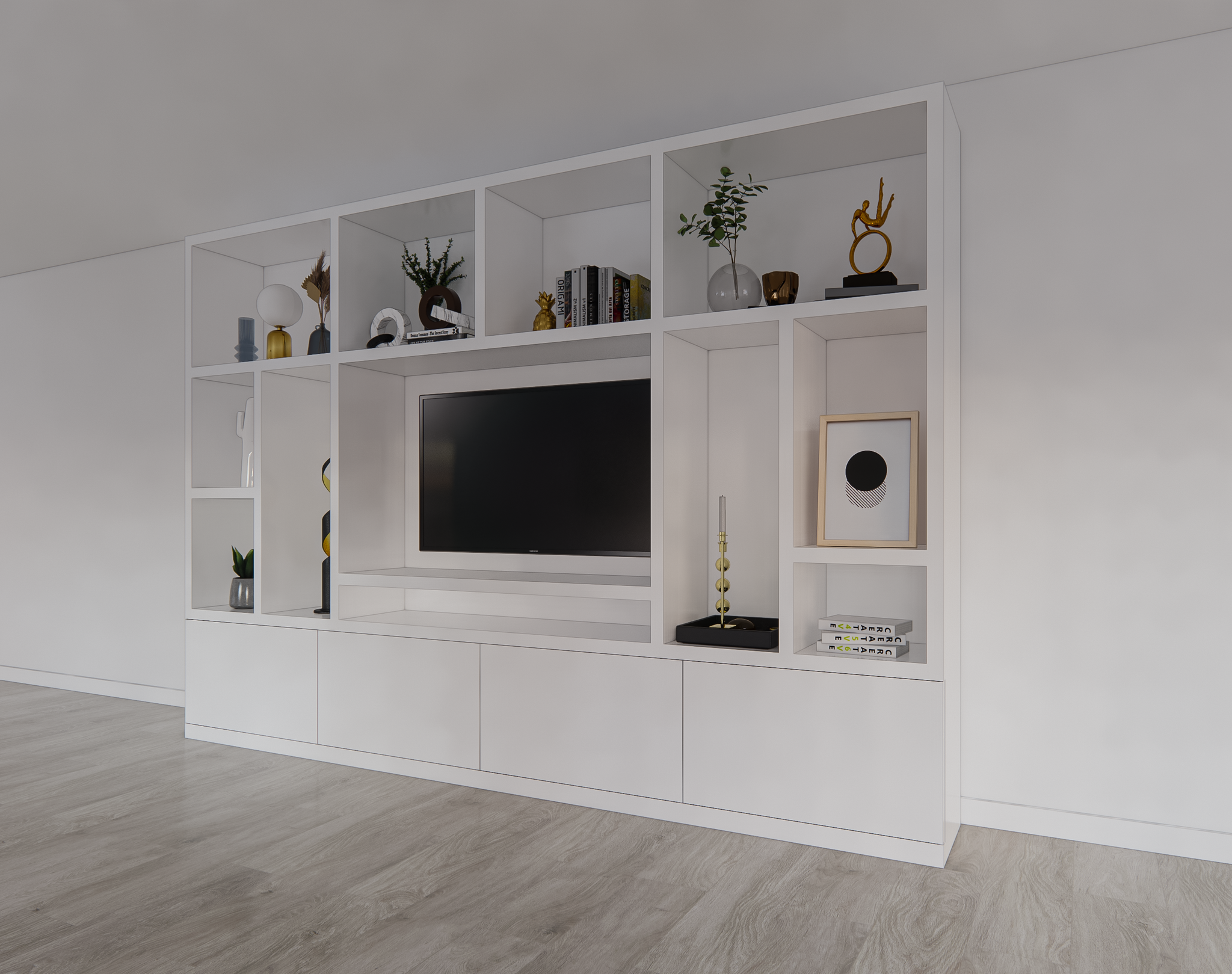 TV-Fachschrank Campos - 350x40x240H cm - TV-Fach - Cinewall - 4 push-to-open Türen - offene Fächer - schlankes Design - 5cm Fachboden- und Rahmenstärke