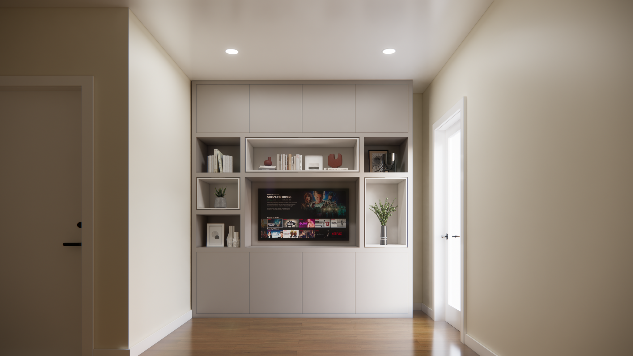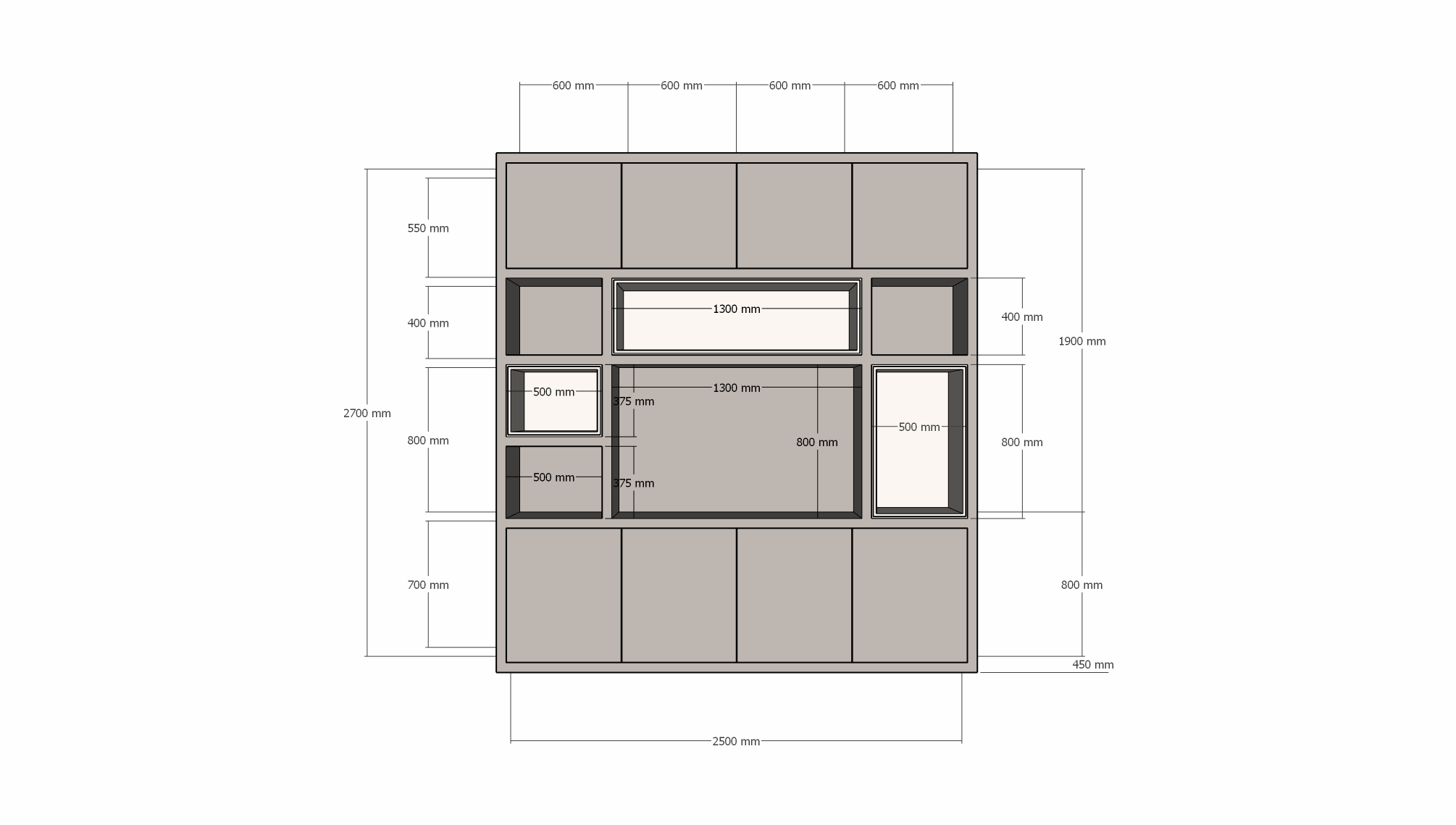TV-Schrank Chard - 250x45x270H cm - Fach in Fach - Türen zum Öffnen mit Druckknopf - schlichte Ausführung