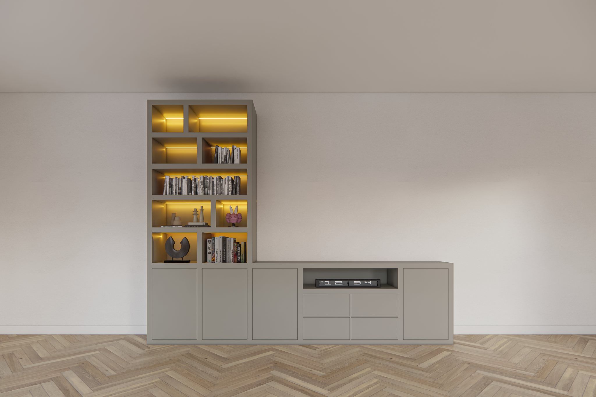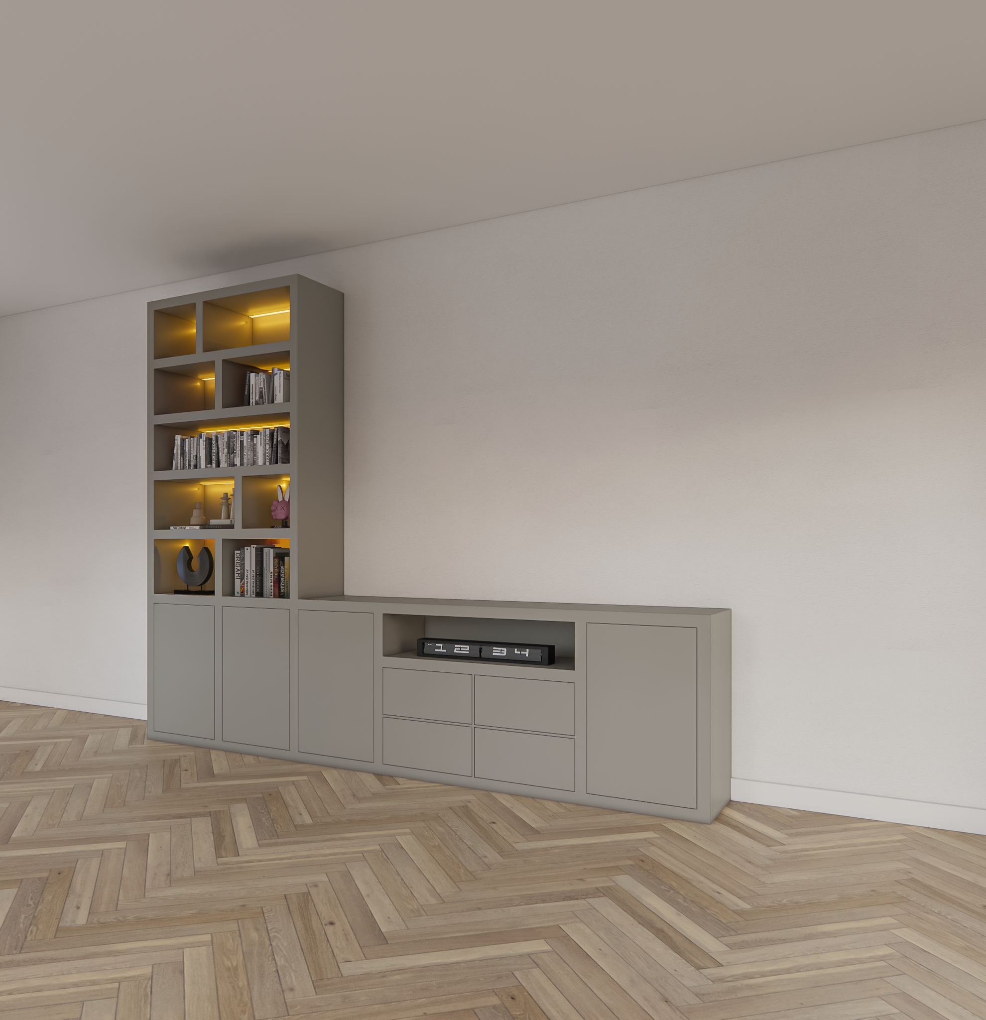 TV-Fach Sideboard Fleurus - 300x40x240H cm - Push-to-open Türen - 4 Push-to-open Schubladen - schlichte Ausführung (STANDARD OHNE BELEUCHTUNG)