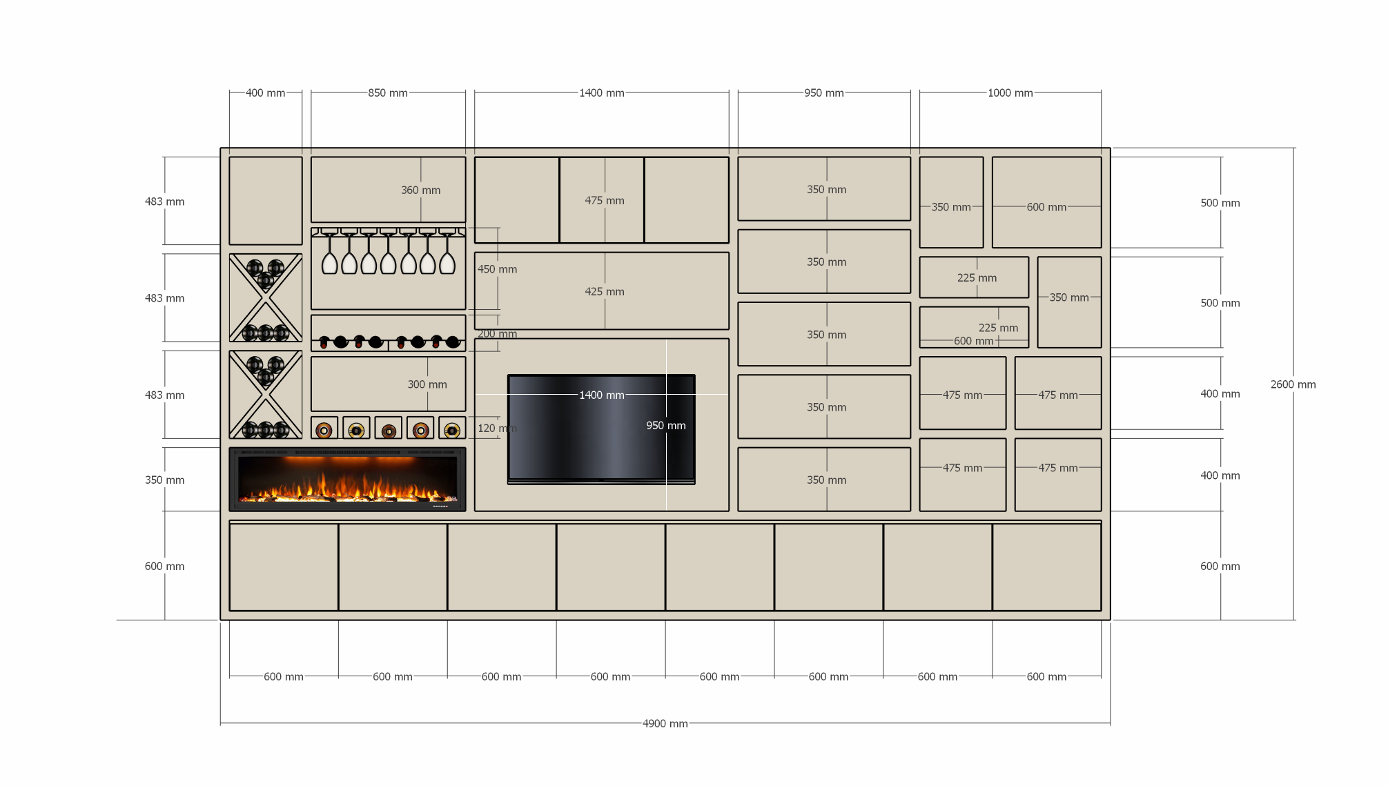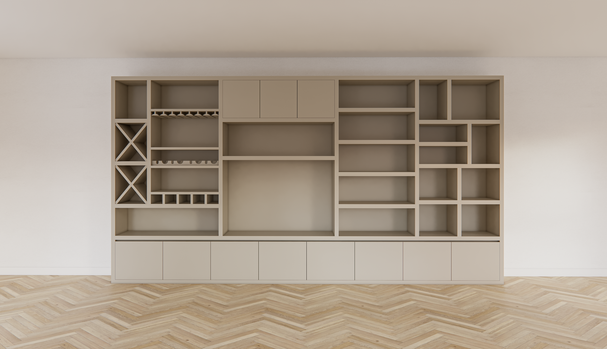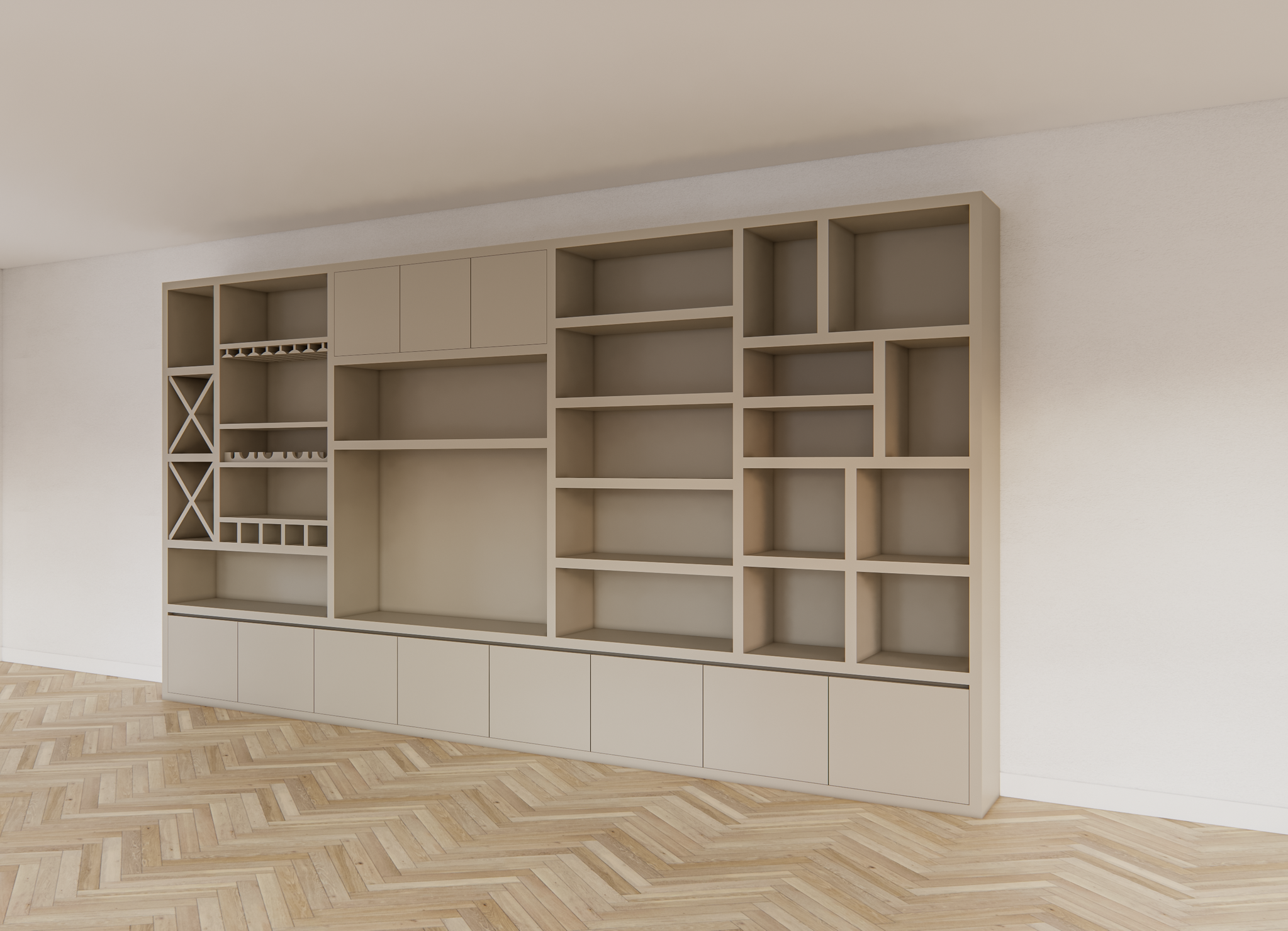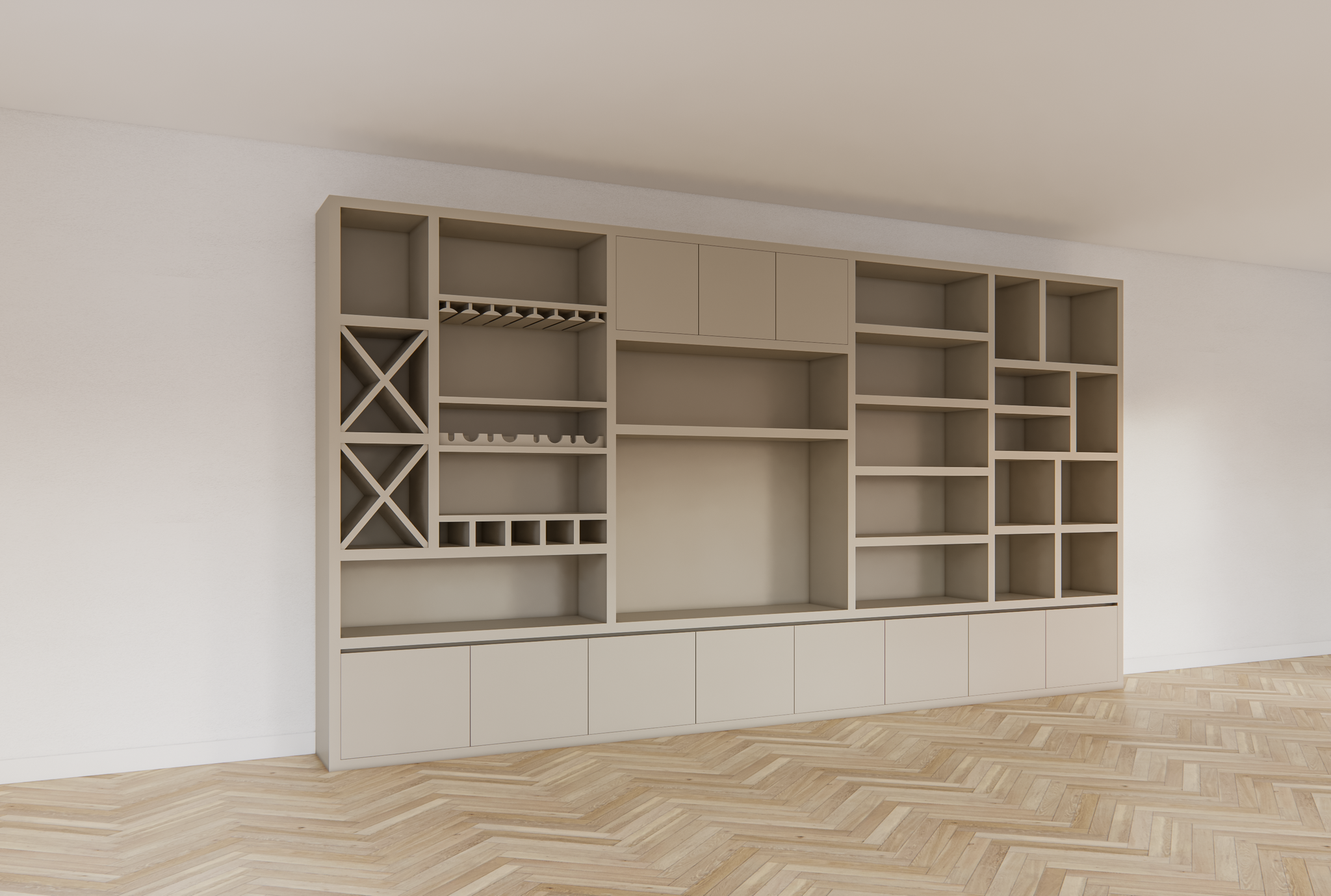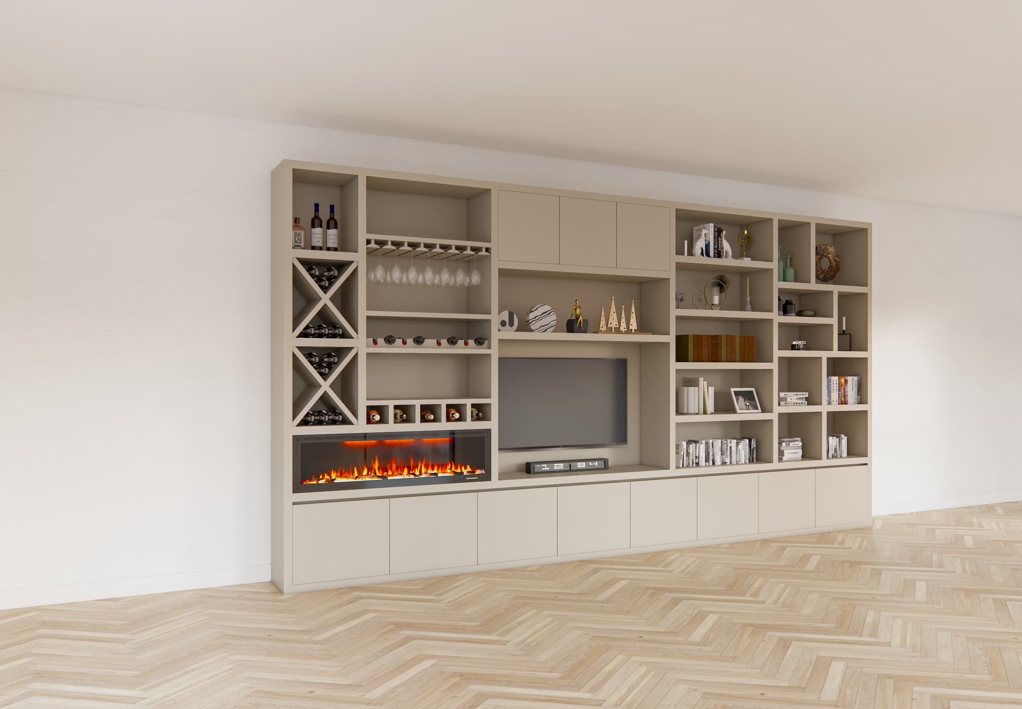Marle Fachschrank - 490x40x260H - (Preis auf Anfrage) - Kamin - Weinregal - push to open Türen - 5cm Fachbodenstärke