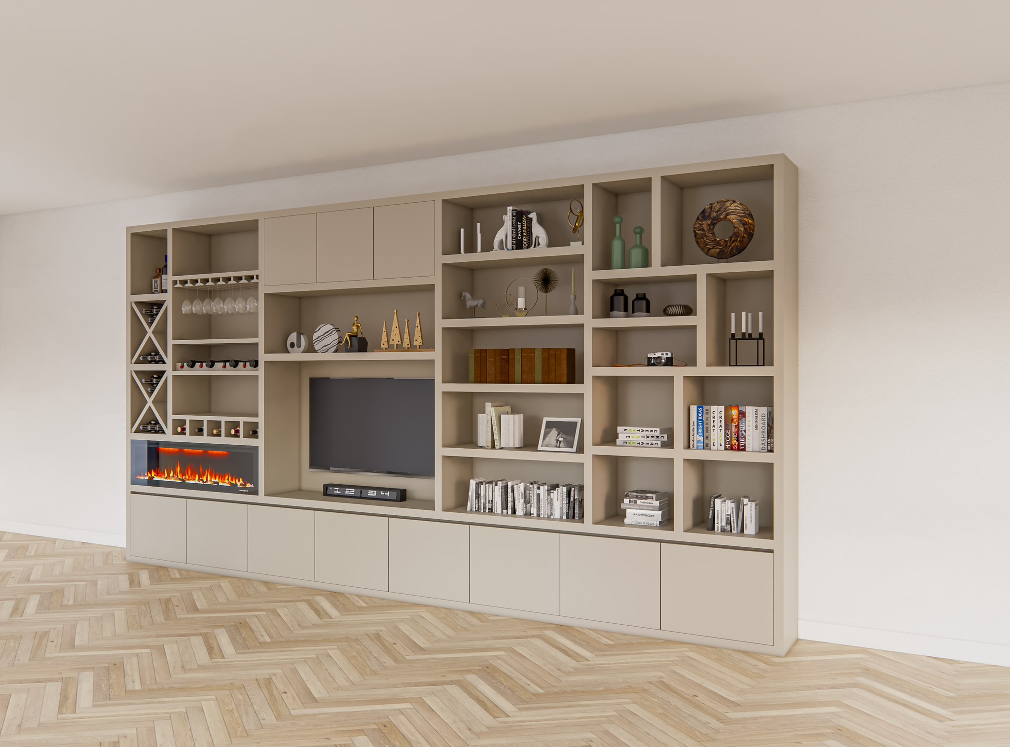 Kurzum, der Marle TV Regalschrank ist eine wunderbare Wahl für alle, die einen stilvollen, funktionellen Schrank suchen, der nach eigenem Geschmack und Platzbedarf gestaltet werden kann. Der optionale Kamin, das Weinregal, die stabilen Einlegeböden und die aufschiebbaren Türen machen ihn zu einer luxuriösen und praktischen Ergänzung Ihres Wohnzimmers. Kontaktieren Sie uns für weitere Informationen oder um ein Angebot anzufordern!