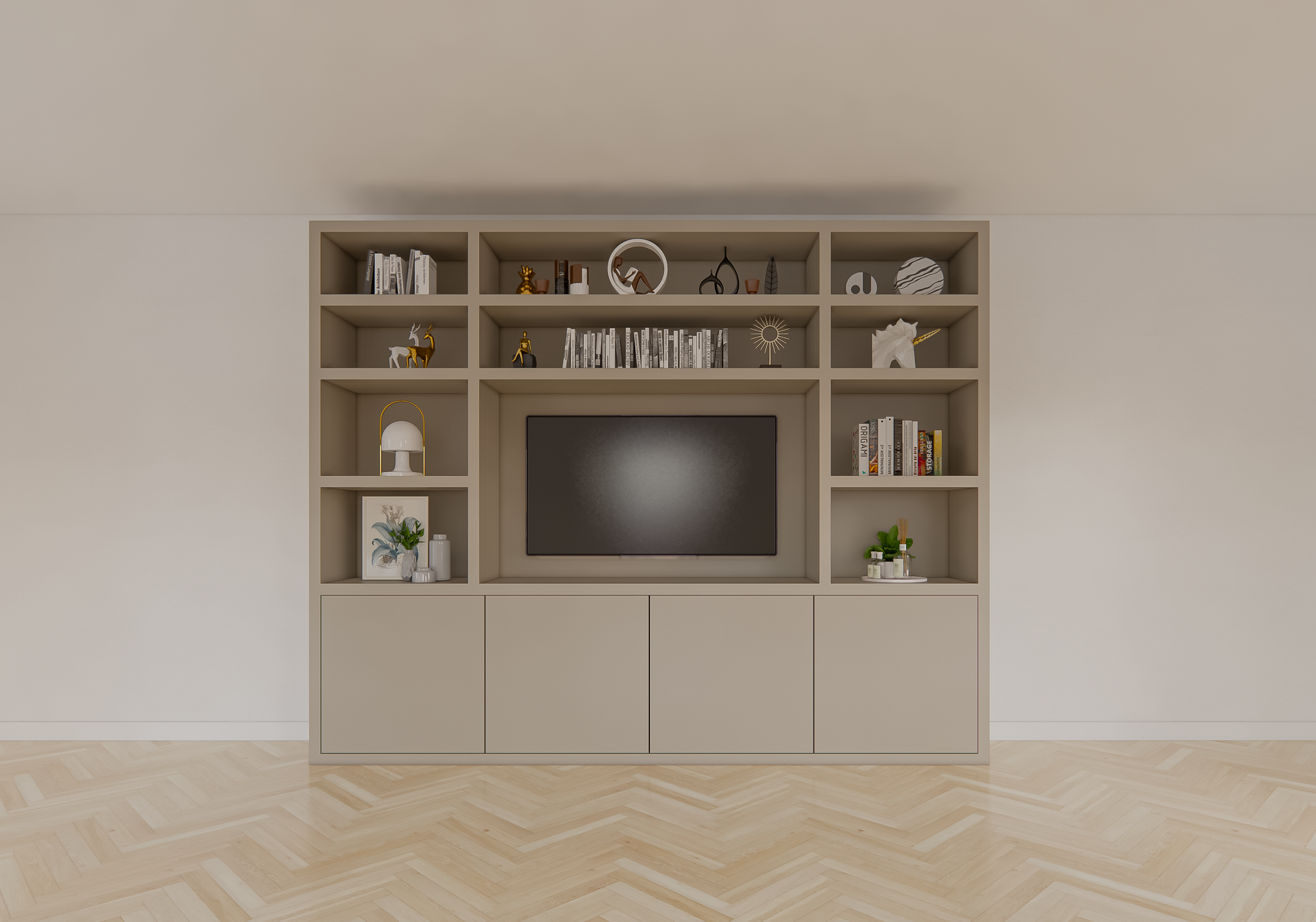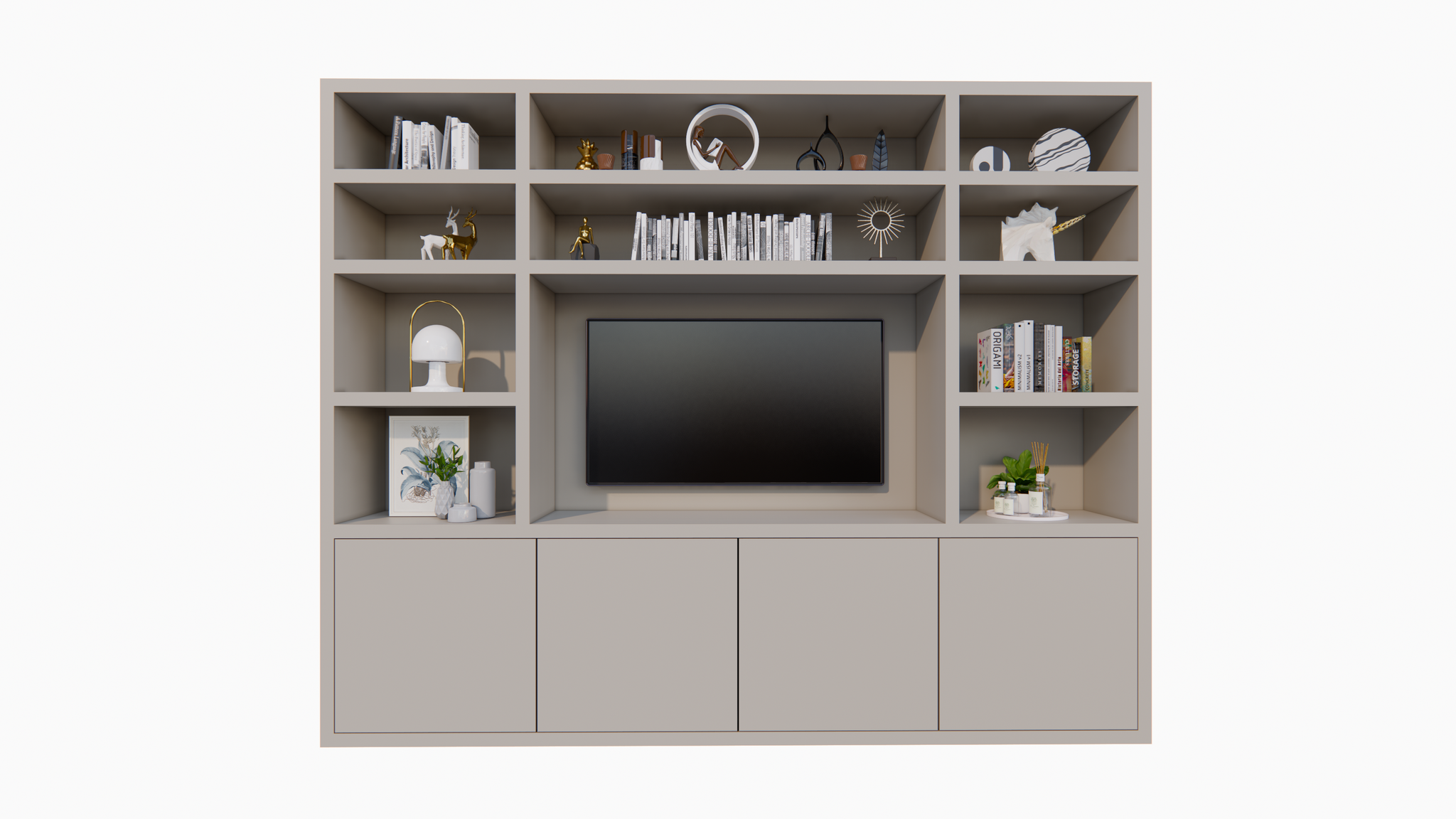 Dieser Schrank verfügt über 11 offene Fächer, die reichlich Platz für Dekorationen, Bücher und andere persönliche Gegenstände bieten. Die 4 Push-to-Open-Türen sorgen für einen eleganten und nahtlosen Look und sind leicht zu öffnen. Die Einlegeböden haben eine Stärke von 5 cm und sorgen für Robustheit, Langlebigkeit und Stabilität.
