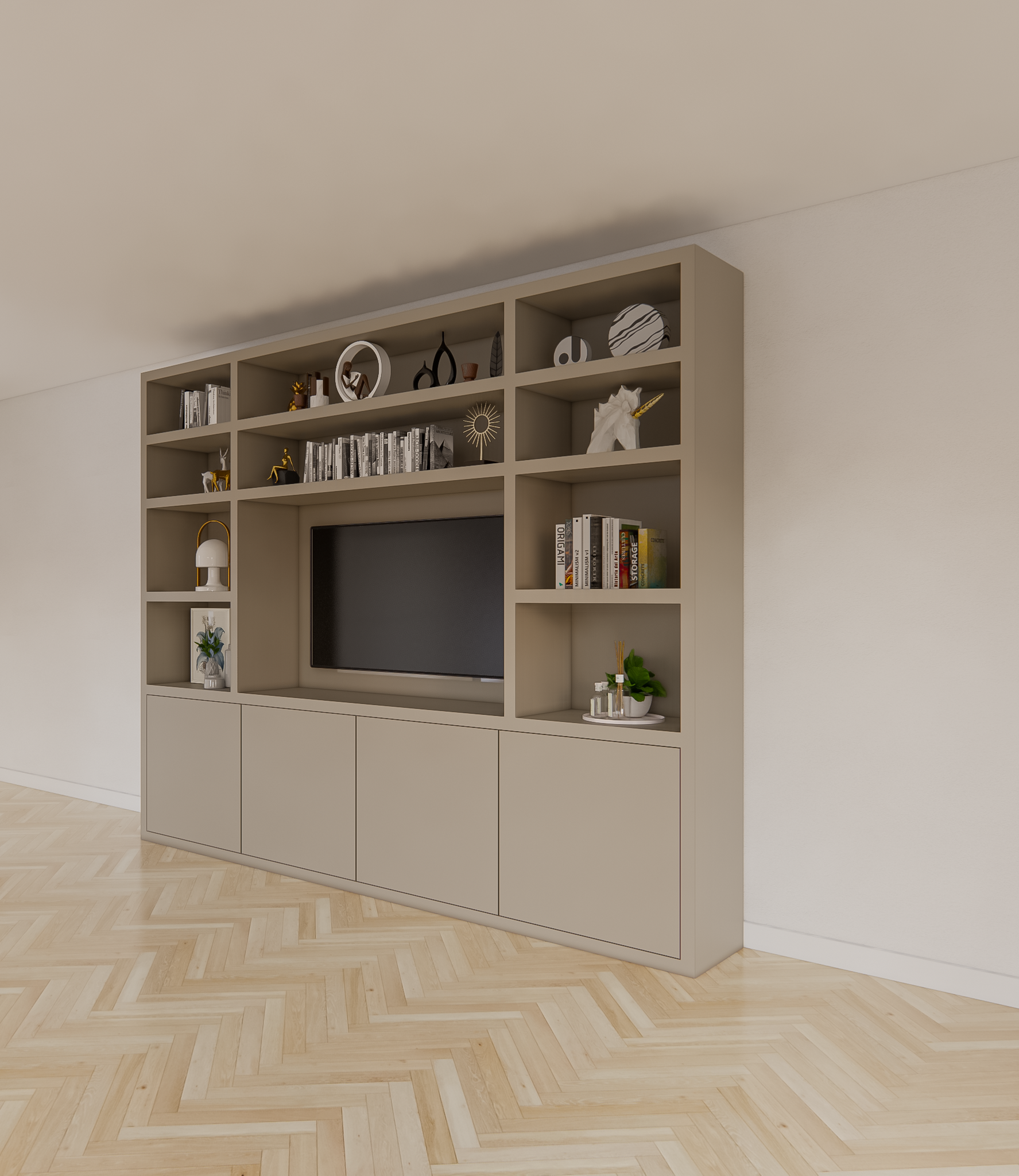 Der Hong Kong Tv-Fachschrank vereint Stil und Funktionalität in einem beeindruckenden Möbelstück. Mit einer großzügigen Größe von 300x40x240 cm bietet dieser Schrank viel Stauraum und ein schlankes Design, das perfekt in jedes moderne Interieur passt.