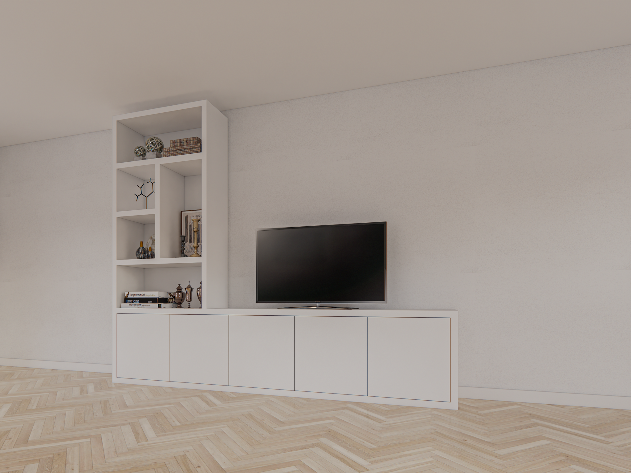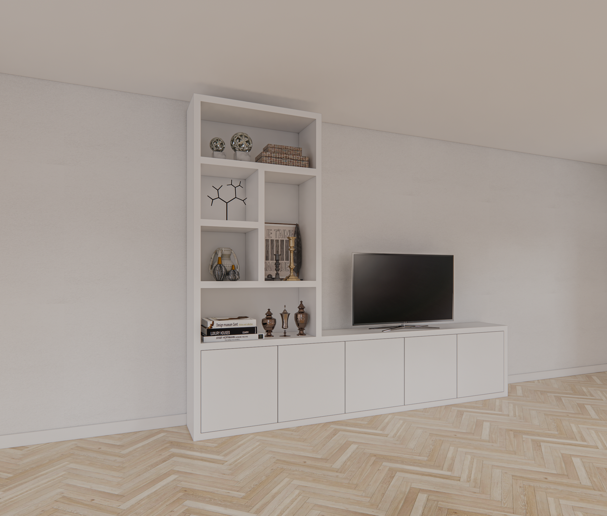 Der TV-Schrank Utrah ist ein stilvolles und funktionelles Möbelstück mit beeindruckenden Maßen von 300x40x250H cm. Dieser Schrank bietet eine hervorragende Lösung für die Organisation all Ihrer Mediengeräte, Bücher und Dekorationsartikel. Mit seinen fünf zu öffnenden Türen ist der Schrank nicht nur praktisch, sondern auch modern und minimalistisch im Design. Die Türen bieten einen eleganten Look und lassen sich ohne sichtbare Griffe leicht öffnen.