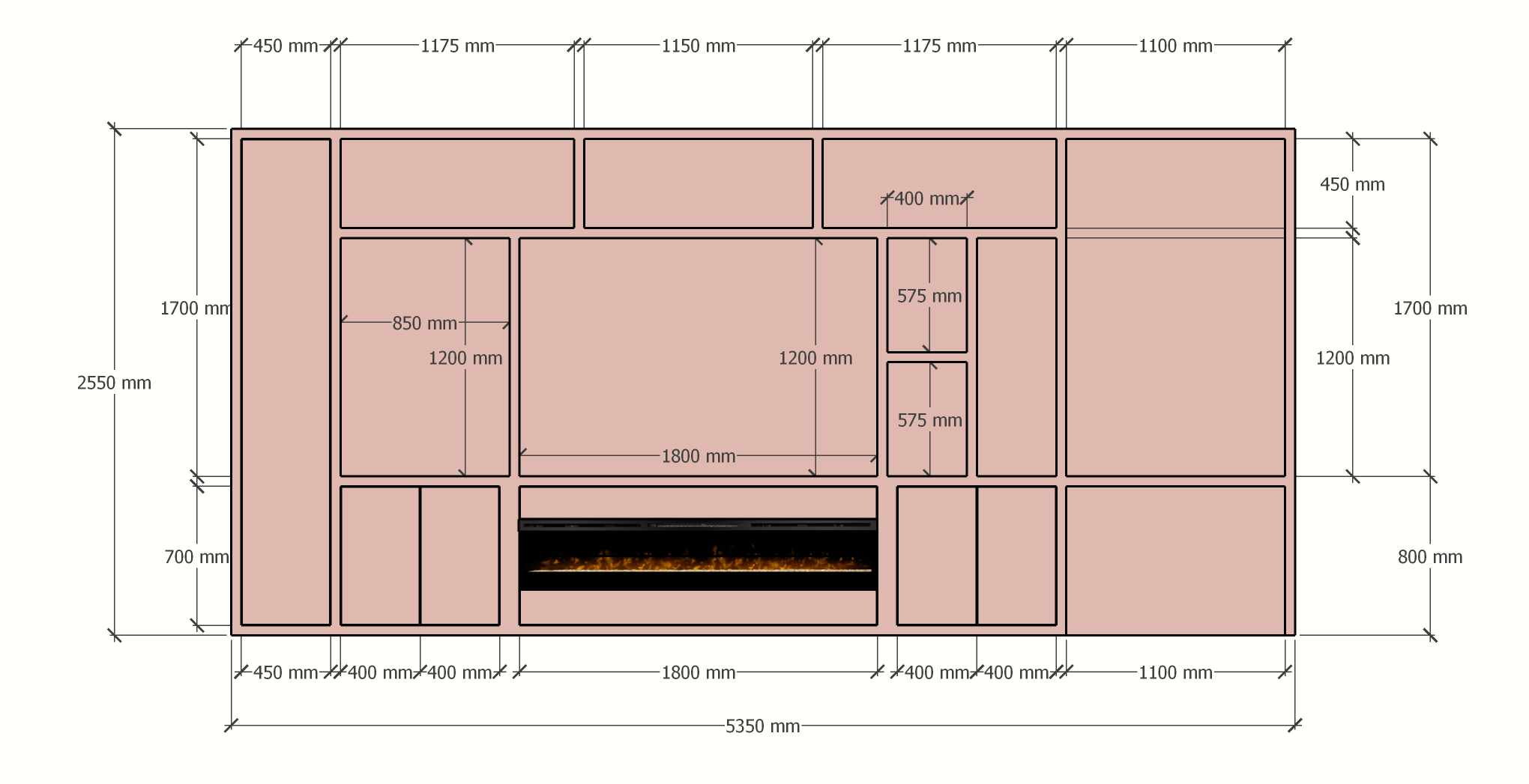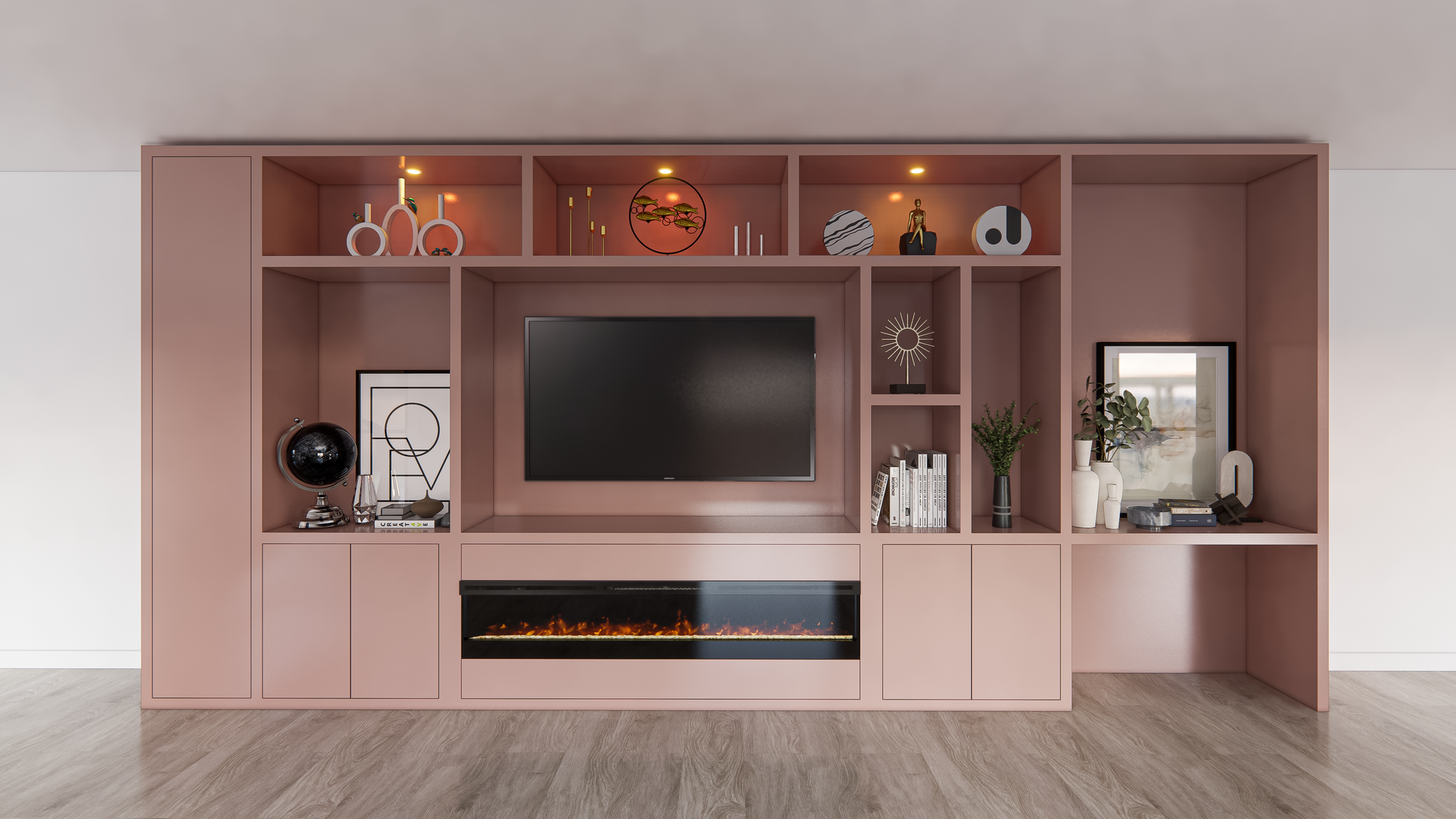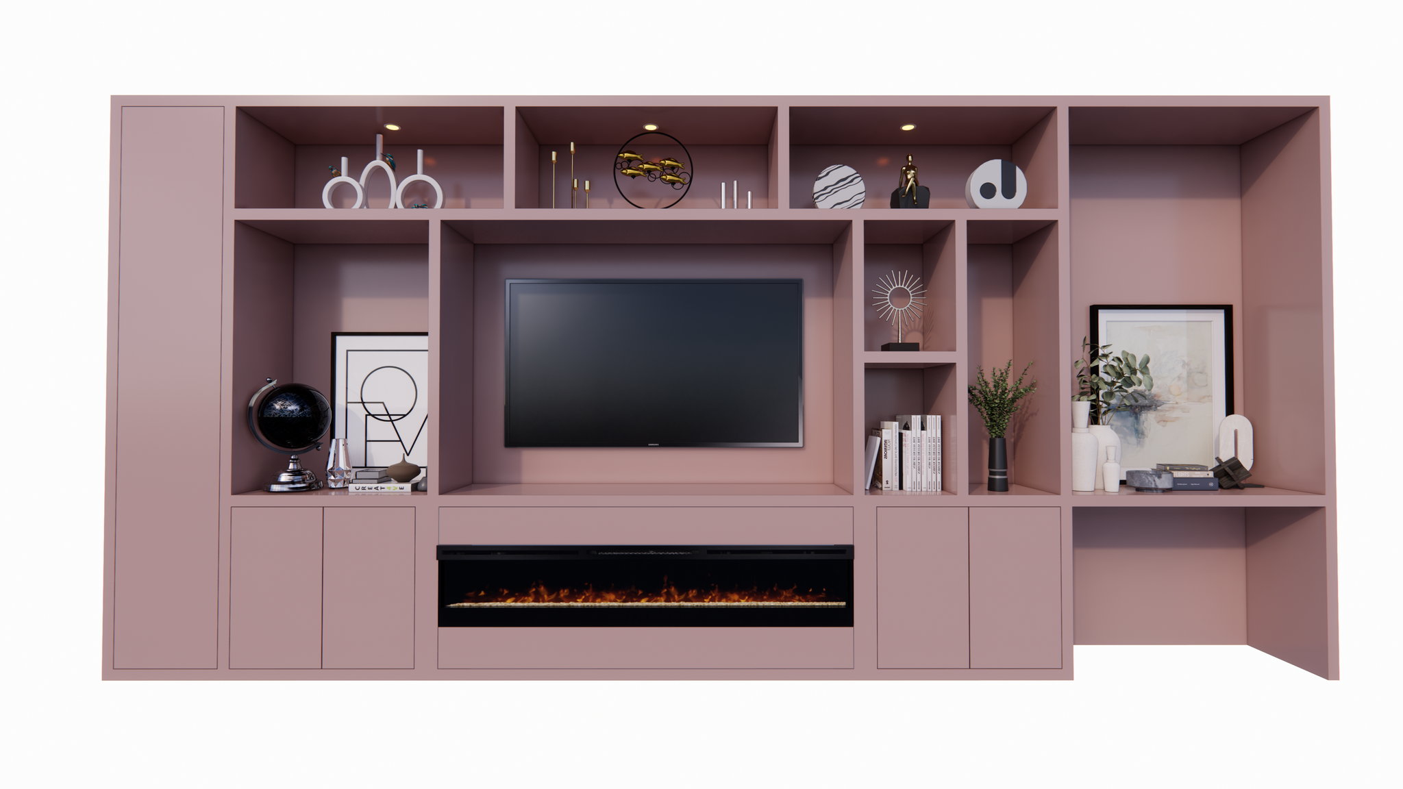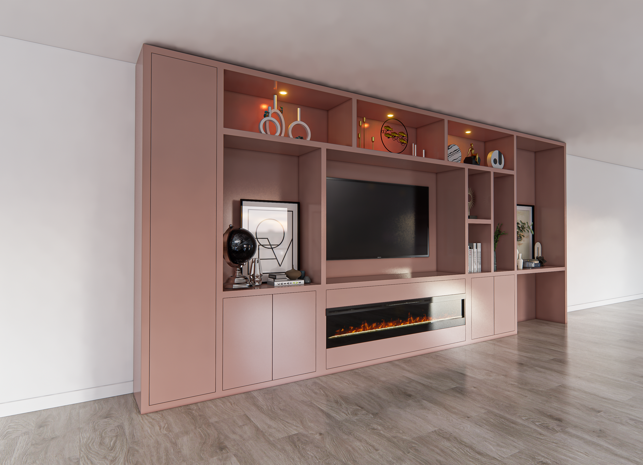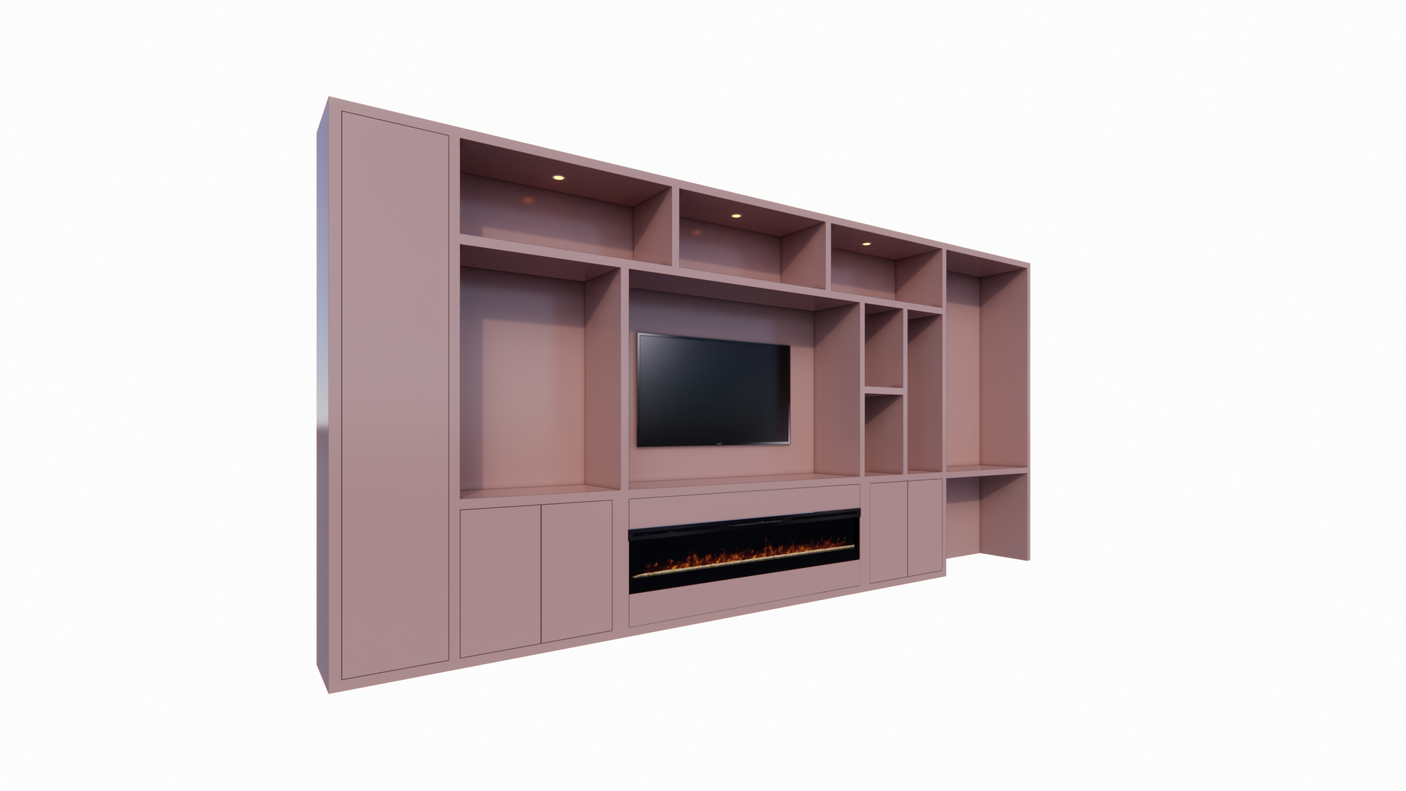 TV-/Bürofachschrank Narni mit Kamin 535x45x255H cm - 5cm Fachbodenstärke - PREIS AUF ANFRAGE