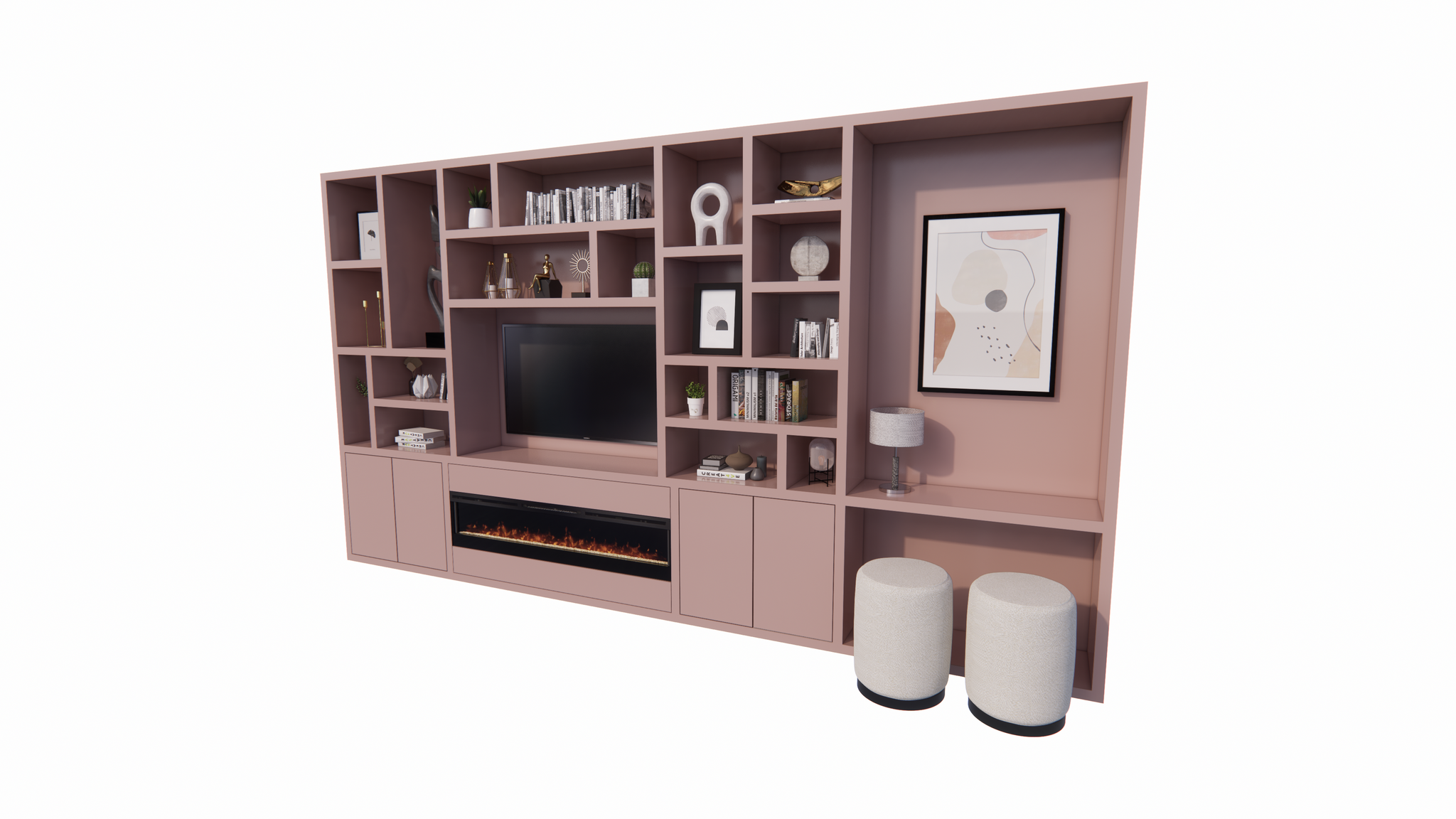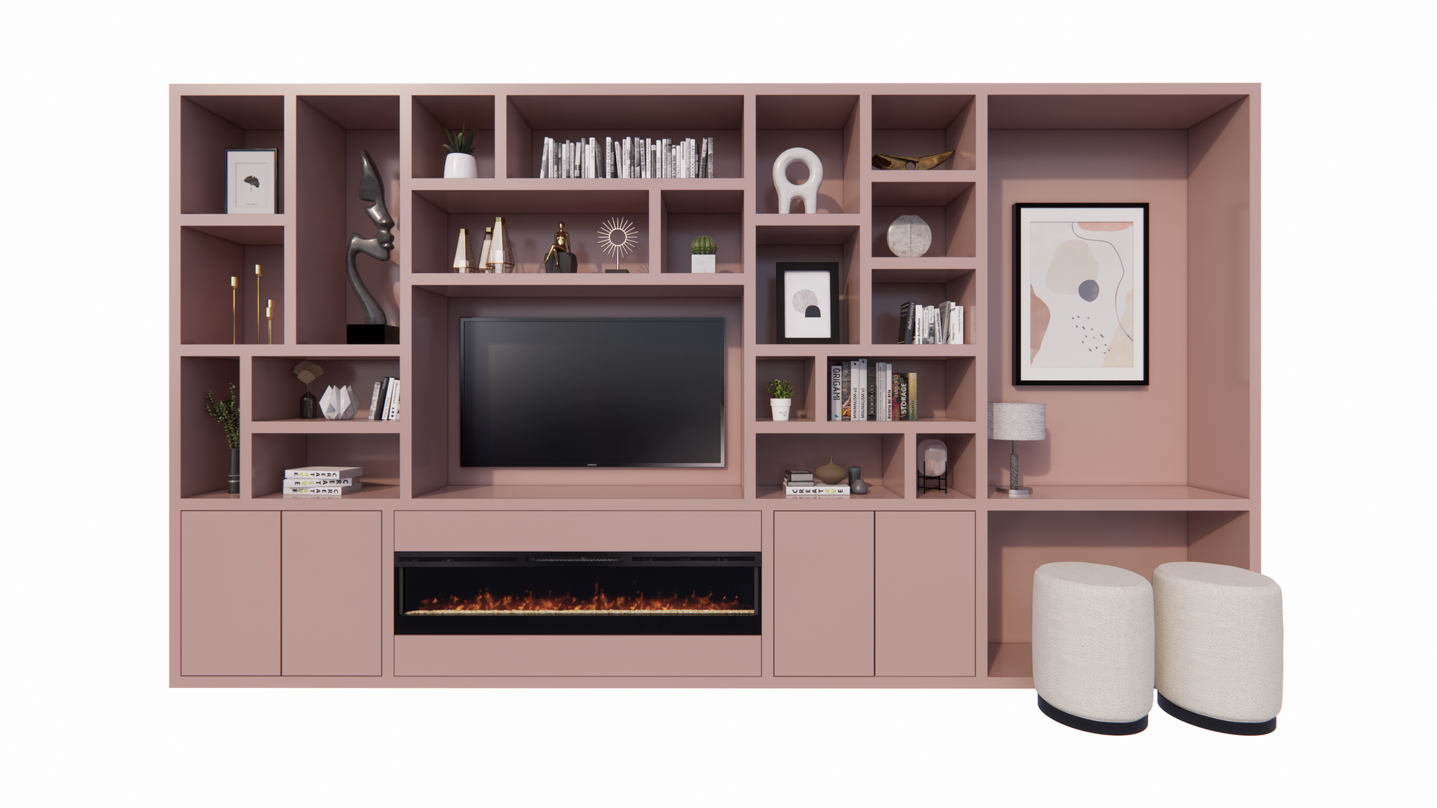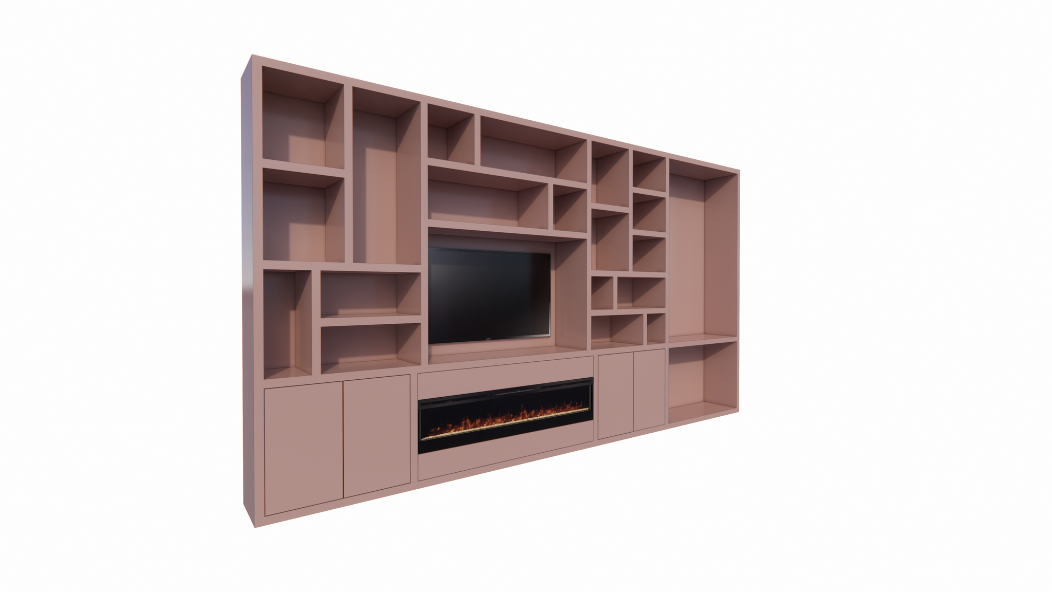 TV-/Bürofachschrank Viterbo mit Kamin - 460x40x255H cm - 5cm Fachbodenstärke - PREIS AUF ANFRAGE