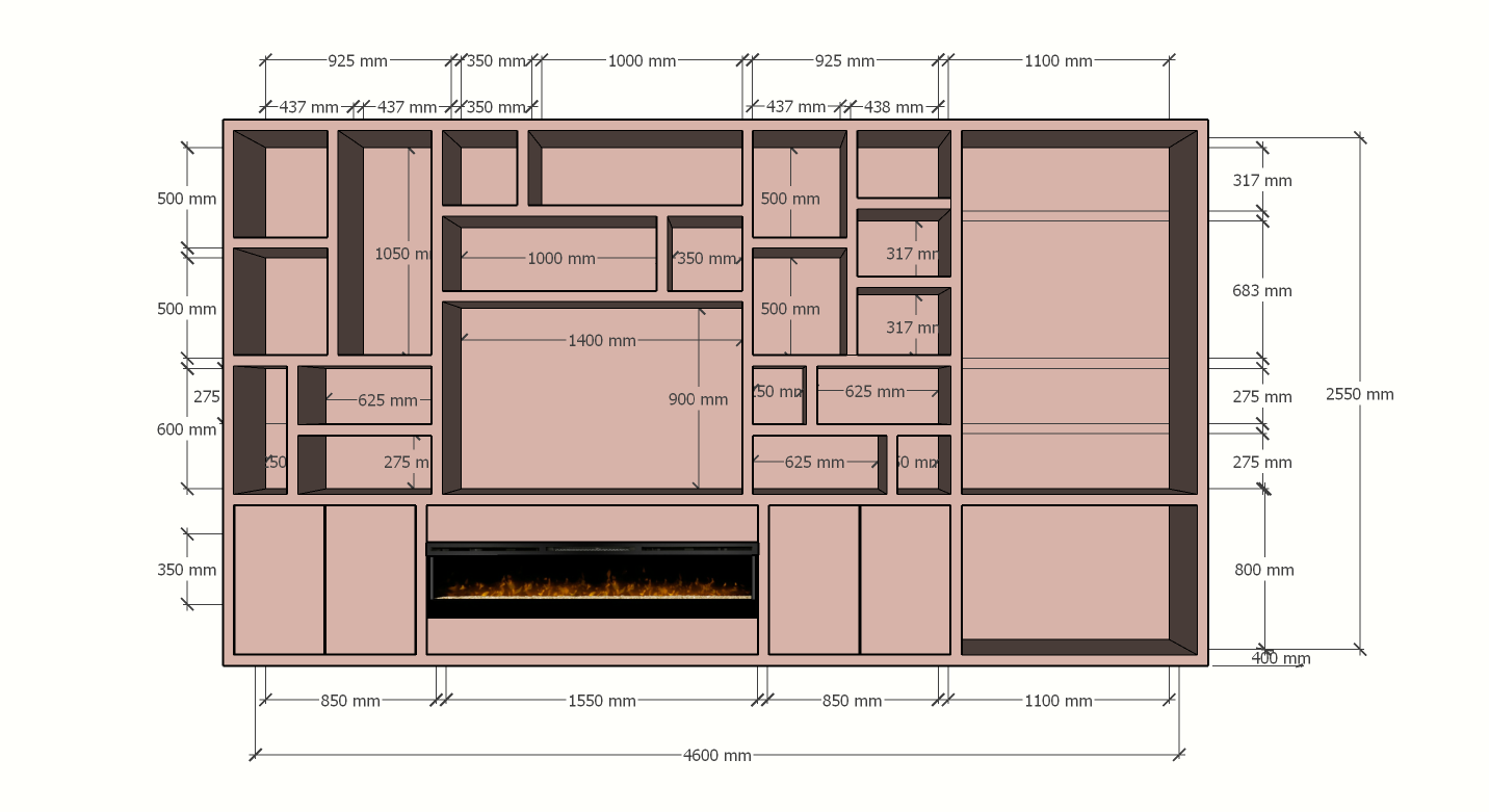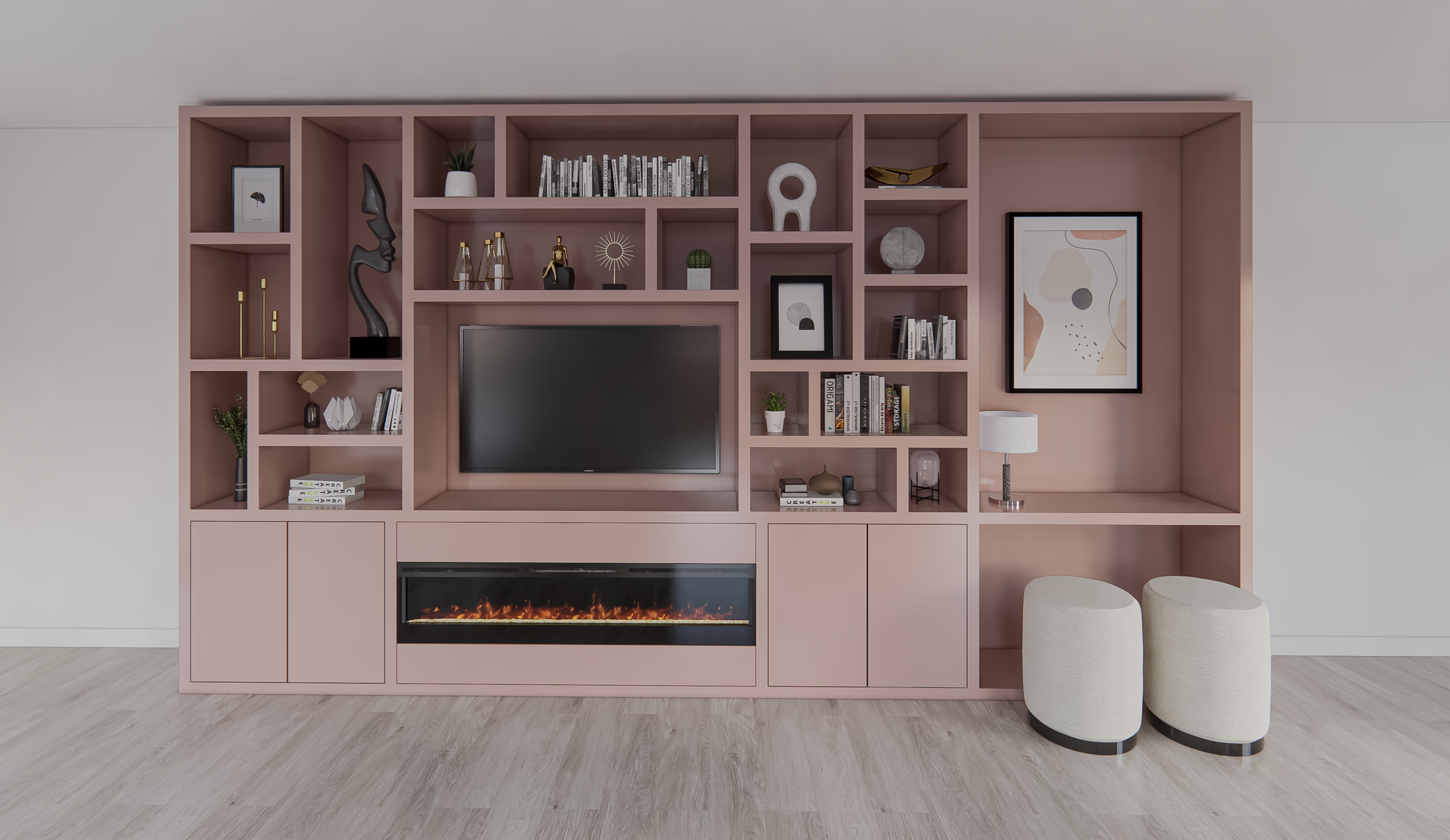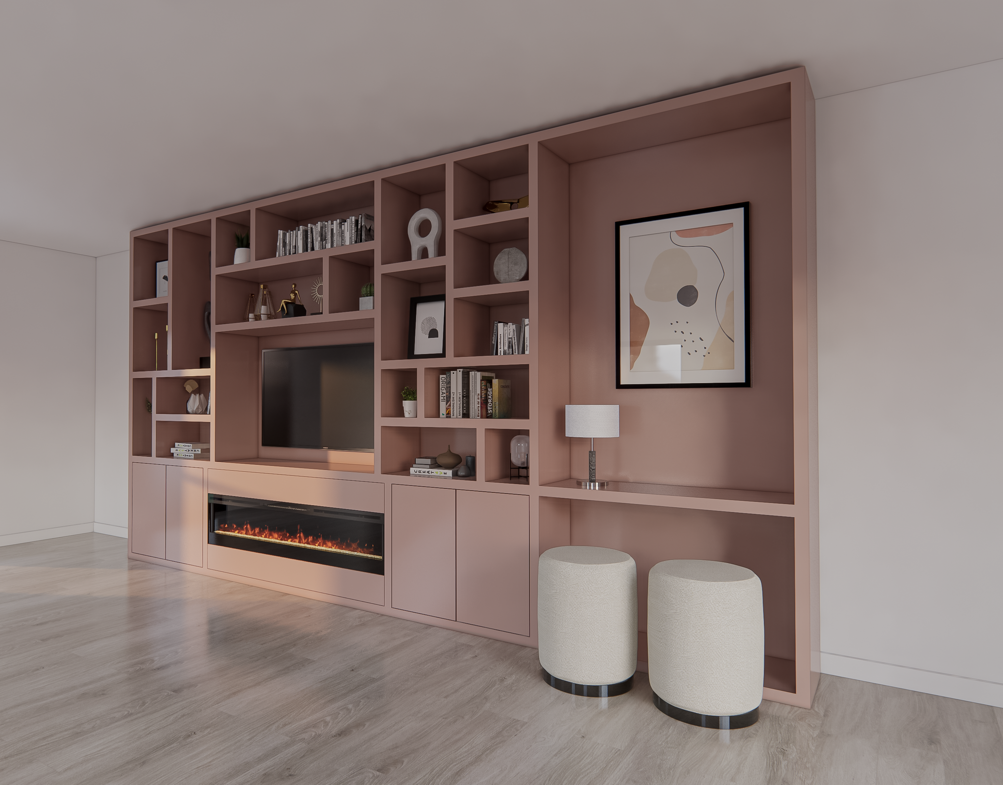 TV-/Bürofachschrank Viterbo mit Kamin - 460x40x255H cm - 5cm Fachbodenstärke - PREIS AUF ANFRAGE