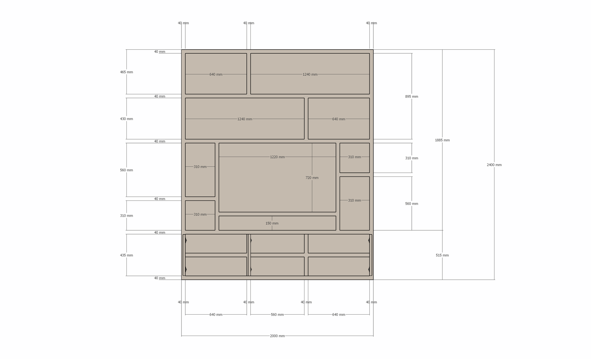 Der Fisterra wird standardmäßig in dieser Ausführung geliefert, kann aber bei Bedarf komplett individuell gestaltet werden. Denken Sie an andere Abmessungen oder eine veränderte Facheinteilung. Auch farblich haben Sie alle Freiheiten: Der Schrank ist in allen gewünschten RAL- oder NCS-Farbcodes erhältlich, so dass Sie das Möbelstück perfekt auf Ihre Einrichtung abstimmen können.