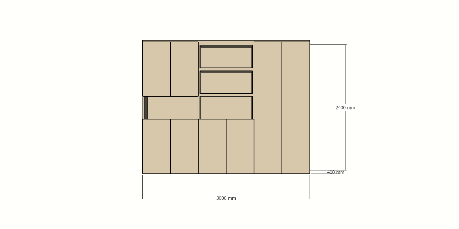 Der Fächerschrank Huete ist ein beeindruckendes Möbelstück, das mühelos Funktionalität und Stil verbindet. Mit seinen großzügigen Abmessungen von 300 cm Breite, 40 cm Tiefe und 240 cm Höhe bietet dieser Schrank eine geräumige Aufbewahrungslösung, ohne dabei an Eleganz einzubüßen. Das klare, minimalistische Design wird durch die Push-to-Open-Türen unterstrichen, die Griffe überflüssig machen und dem gesamten Schrank einen modernen Look verleihen. Die Türen lassen sich mit einem leichten Druck öffnen, was sowohl praktisch als auch stilvoll ist.