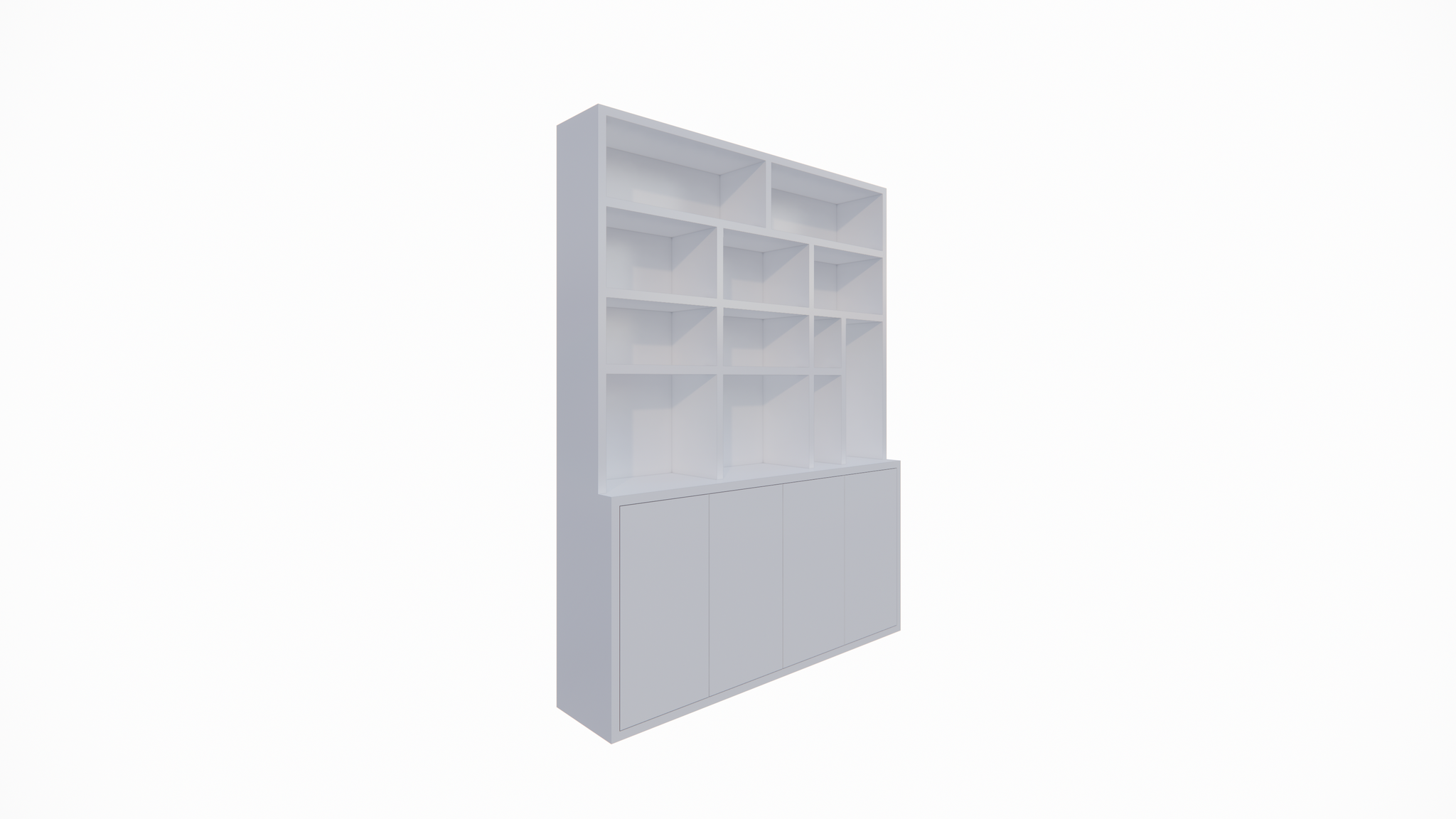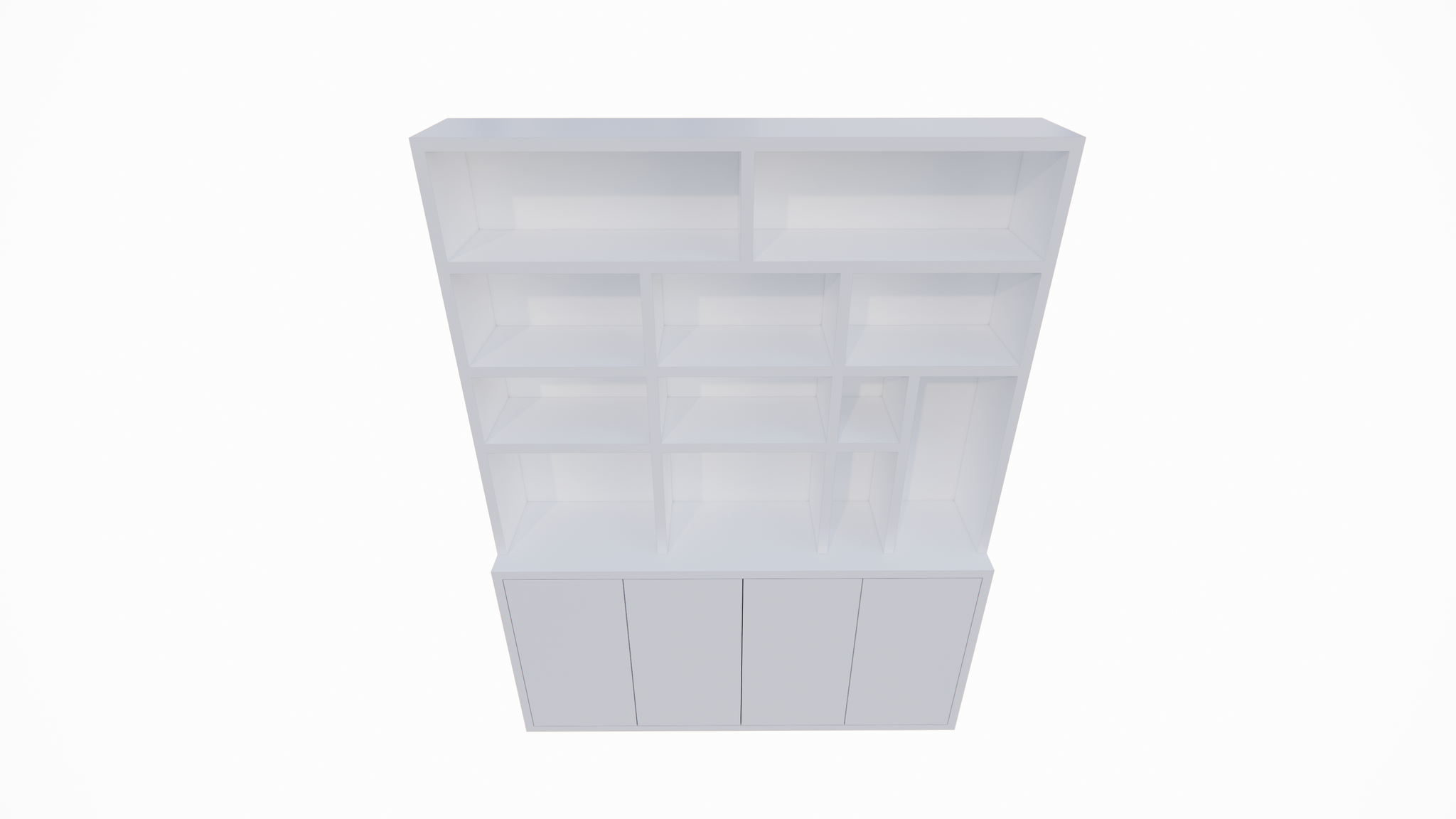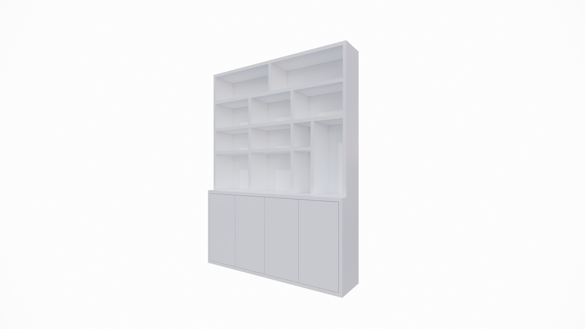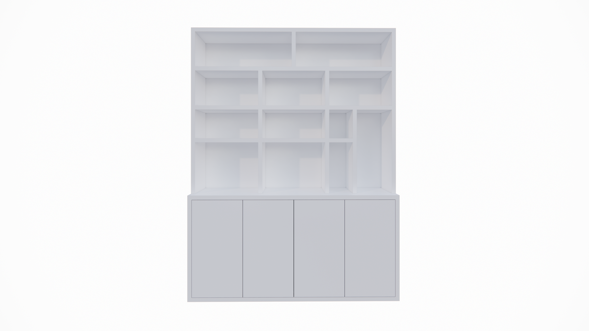 Die offenen Fächer schaffen eine spielerische und luftige Anordnung, in der Sie alle Ihre Lieblingsbücher, Accessoires oder Kunstobjekte schön präsentieren können. Der Boden des Schranks ist mit Push-to-Open-Türen ausgestattet, die einen eleganten und grifflosen Look sowie genügend Stauraum bieten, um die Dinge ordentlich zu verstauen.