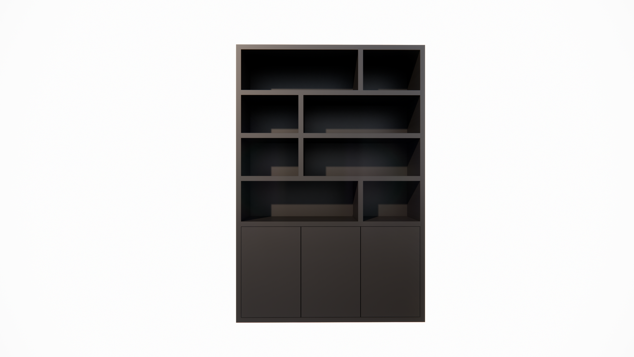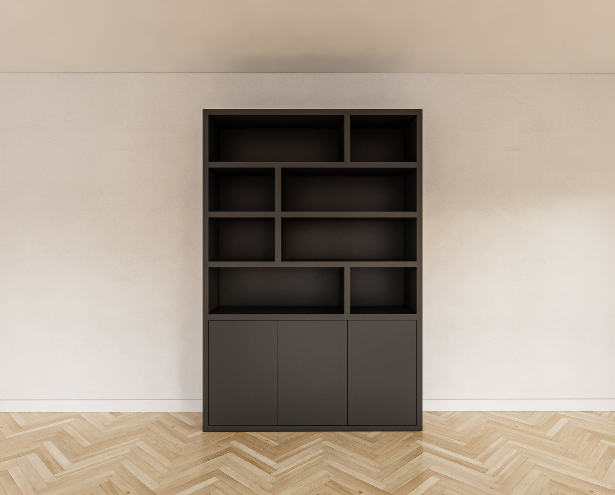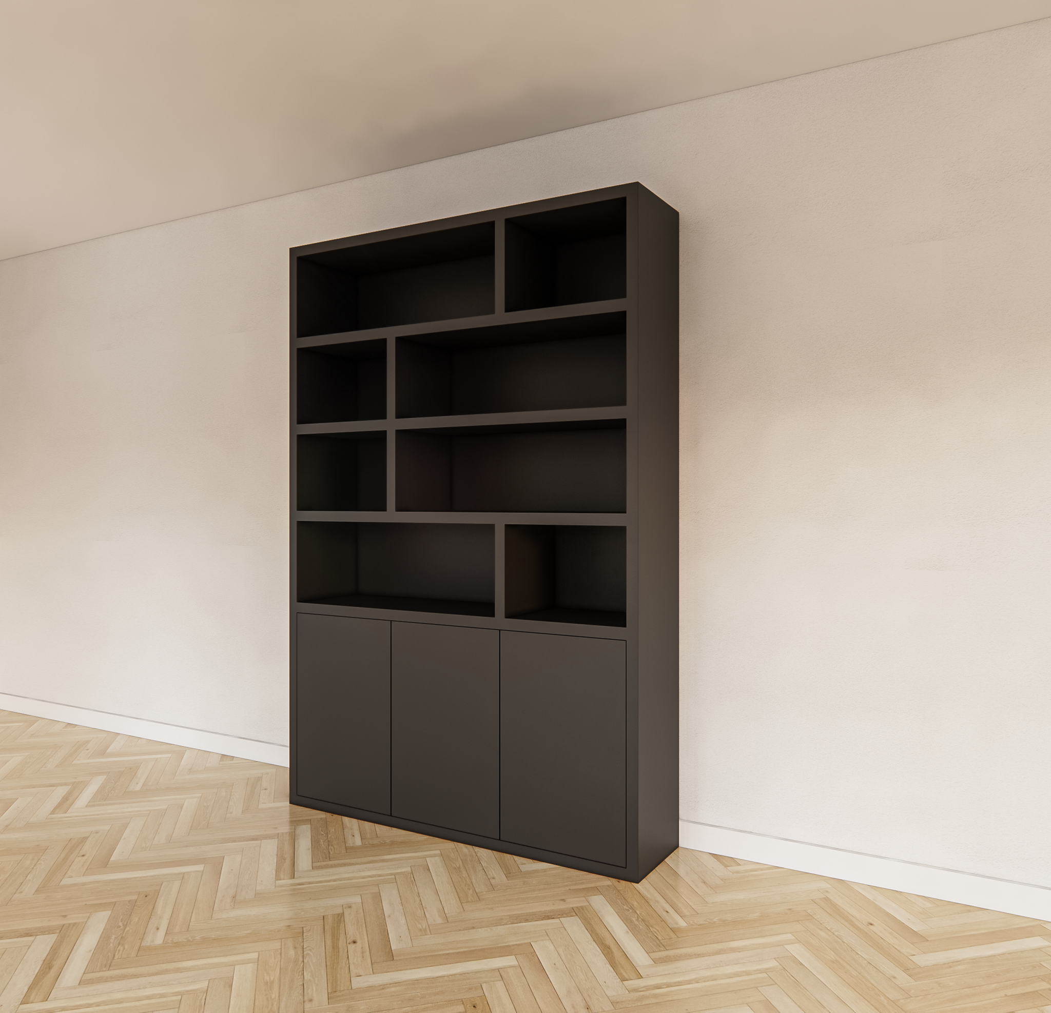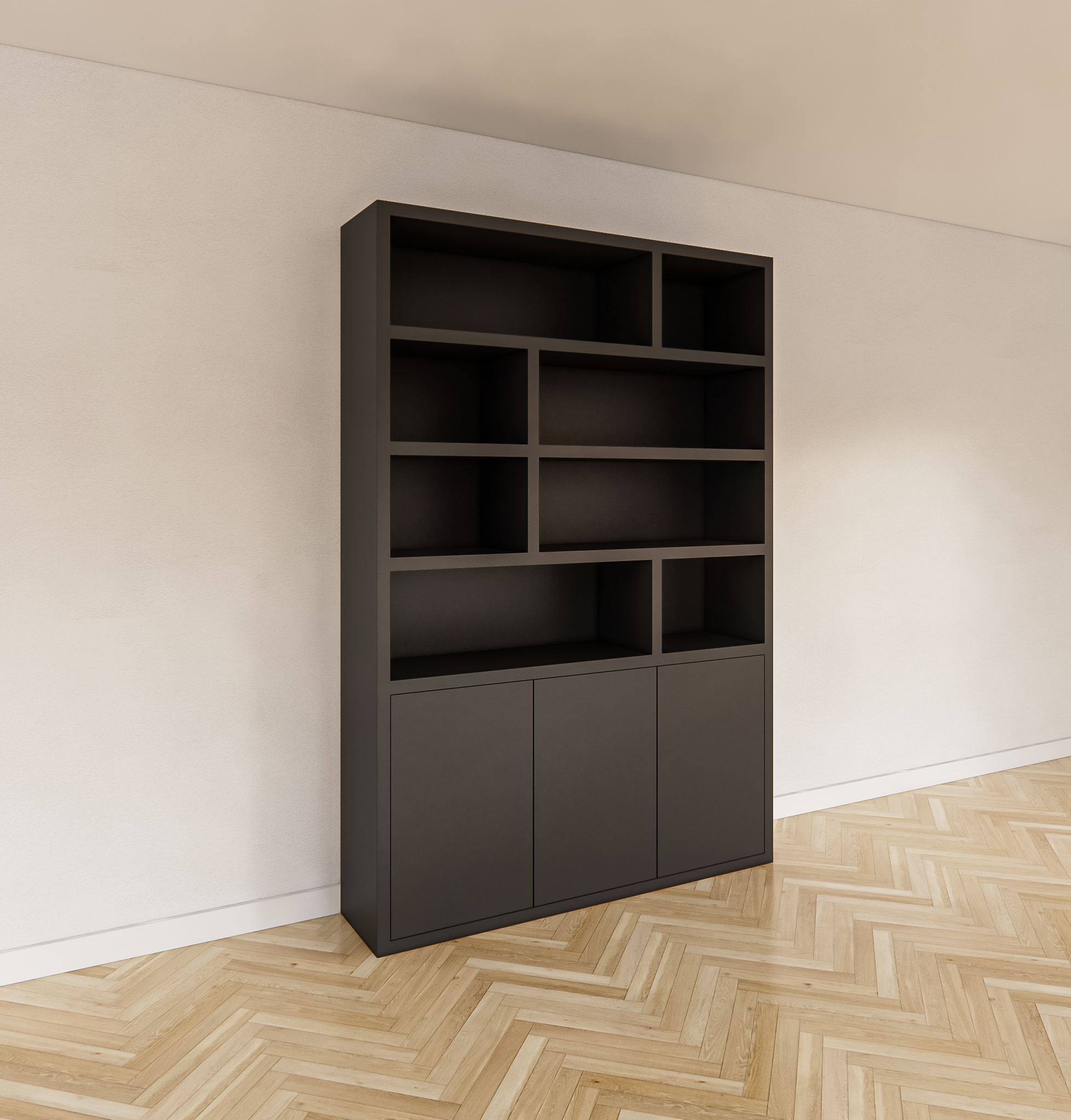 Bücherregal Mendoza 03 - 150x35x220H cm - 3 Türen zum Aufschieben - 8 offene Fächer